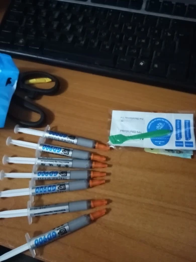 Лучший продавец. Быстрая отправка в хороший упаковке. Паста лучшая за свои деньги. Даже более чем. Постоянно мажем в ноутбуки. Не сильно жидкая и не сильно густая. В комплекте идёт лопатка для мазюканья