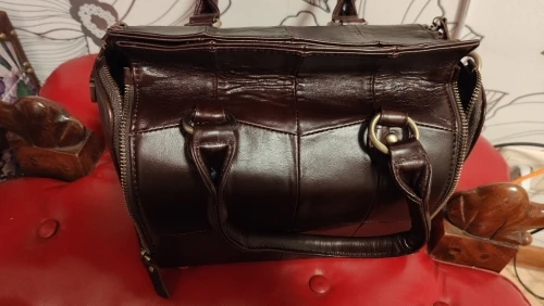 Товар пришел плохо упакованный, мятый и грязный. Углы замяты, нервная строчка, форма у сумки вся смята, включая ручки. В таком виде нельзя присылать товар и главное отсутствует длинная ручка. Сумка жёсткая, а форму не держит. Фурнитура не была заклеена плёнкой, такое впечатление, что она уже пользованая