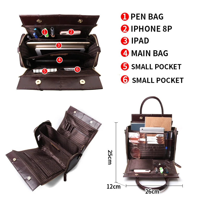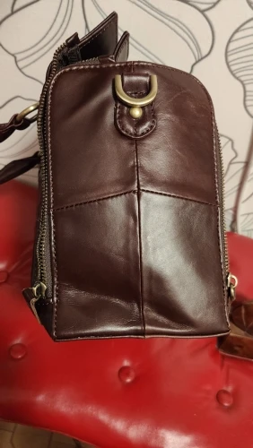Сумка пришла из Китая, продавец упаковал хорошо, она небольшого размера, кожа. Полностью соответствует ожиданиям по внутреннему наполнению. Одно НО - по бокам на стыке молний имеются отверстия, т.к. молнии не сходятся впритык друг к другу. Зимой может попадать снег, летом дождь. Магнитная застежка держит хорошо, вид у сумки респектабельный. Рекомендую к покупке, сумка оригинальная, органайзер, все мелочи, которые обычно лежат в куче, теперь будут каждая на своем месте (дамы меня поймут).