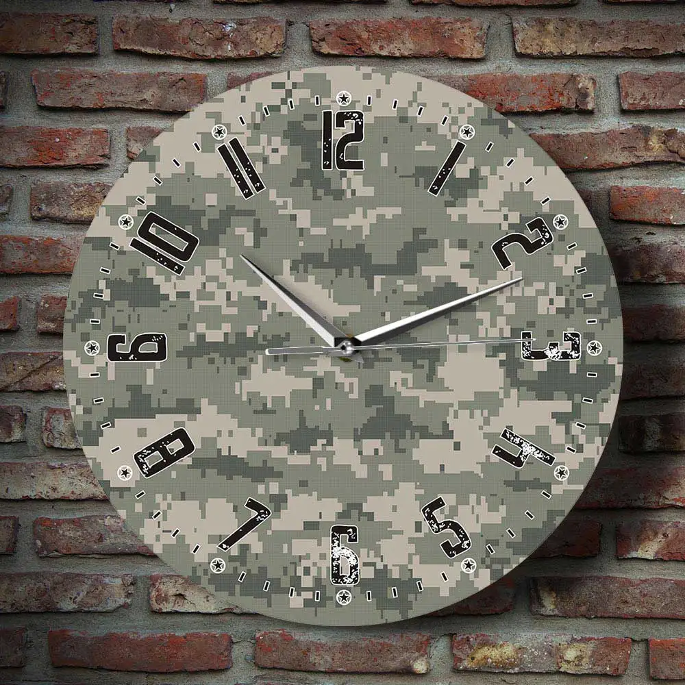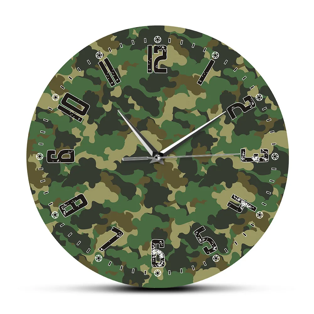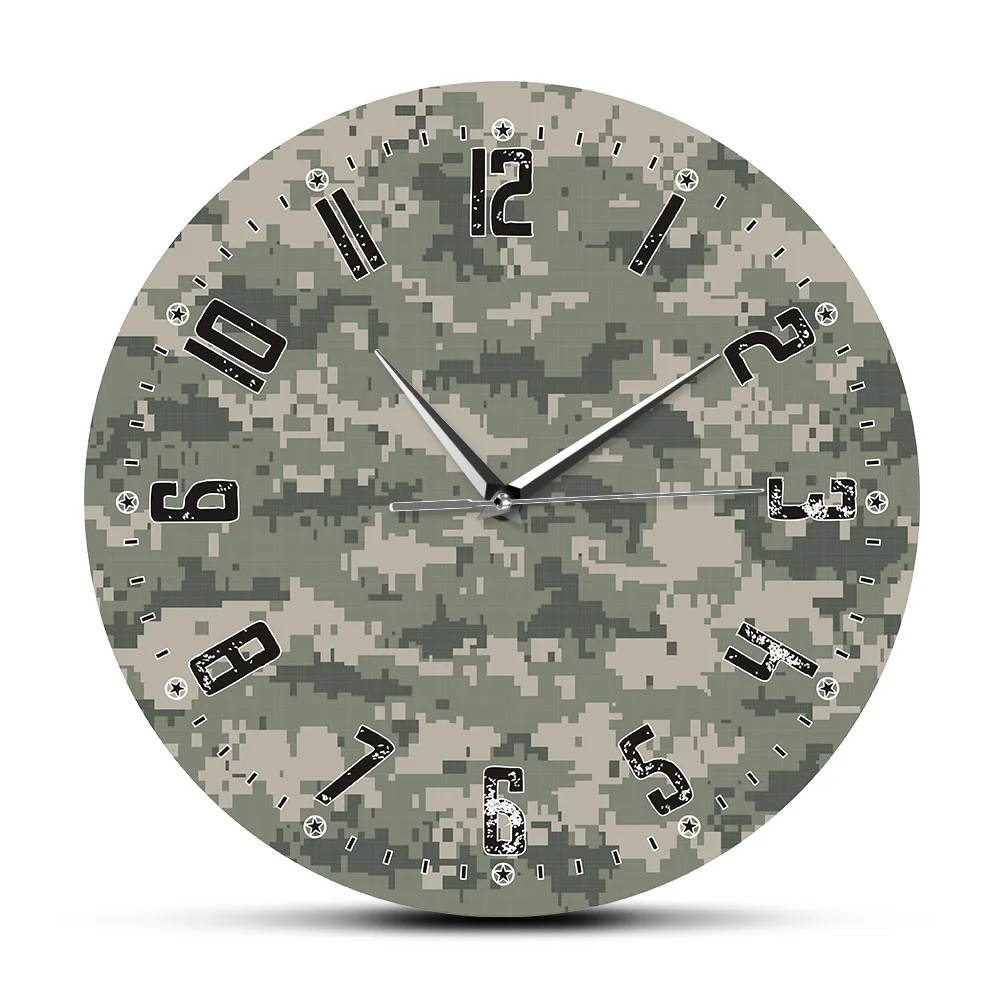 Современный Камуфляжный дизайн, бесшумные акриловые часы с принтом, домашний декор для гостиной, армейские кварцевые часы, военные часы
