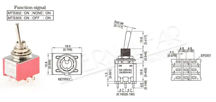 SPDT DPDT переключатель сброса запирающий переключатель MTS-102 5A 6A 125V 3A 250 AC Mini 3 6 Pin ВКЛ.-ВЫКЛ.-ВКЛ.-вкл.