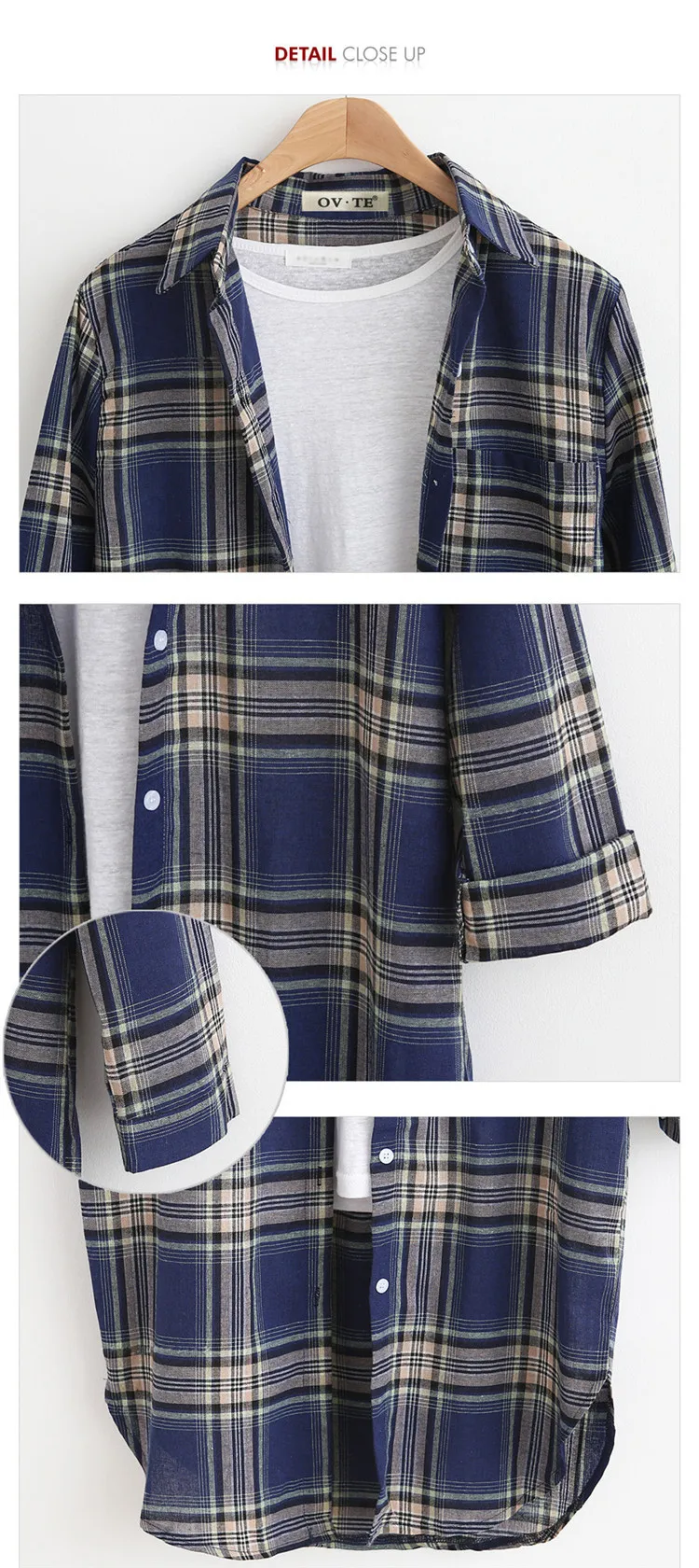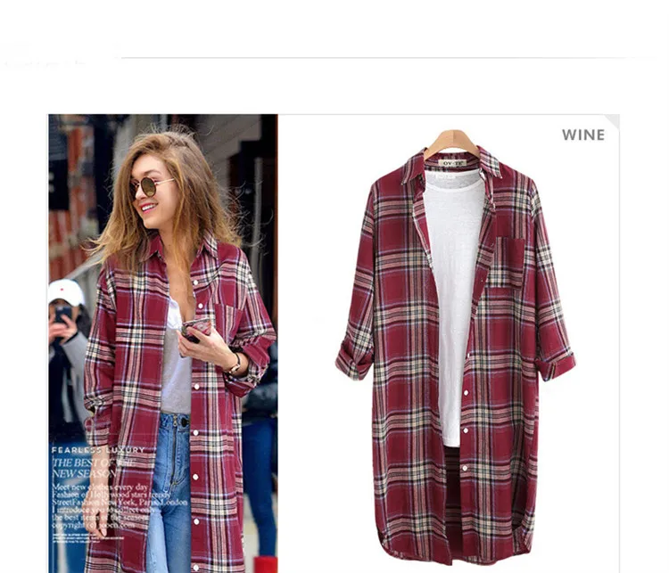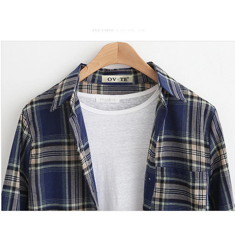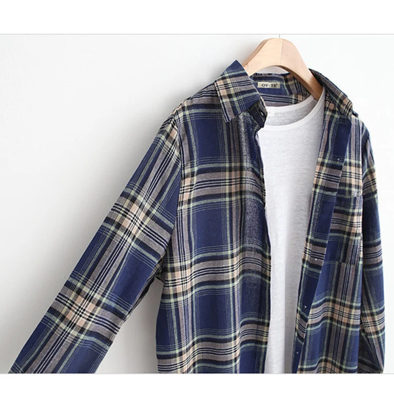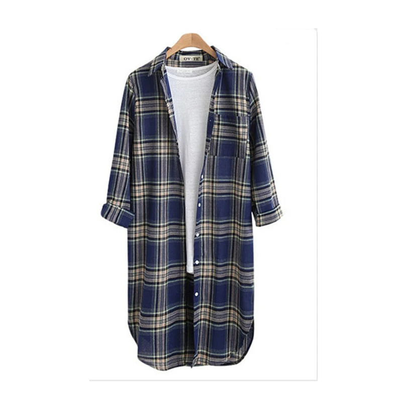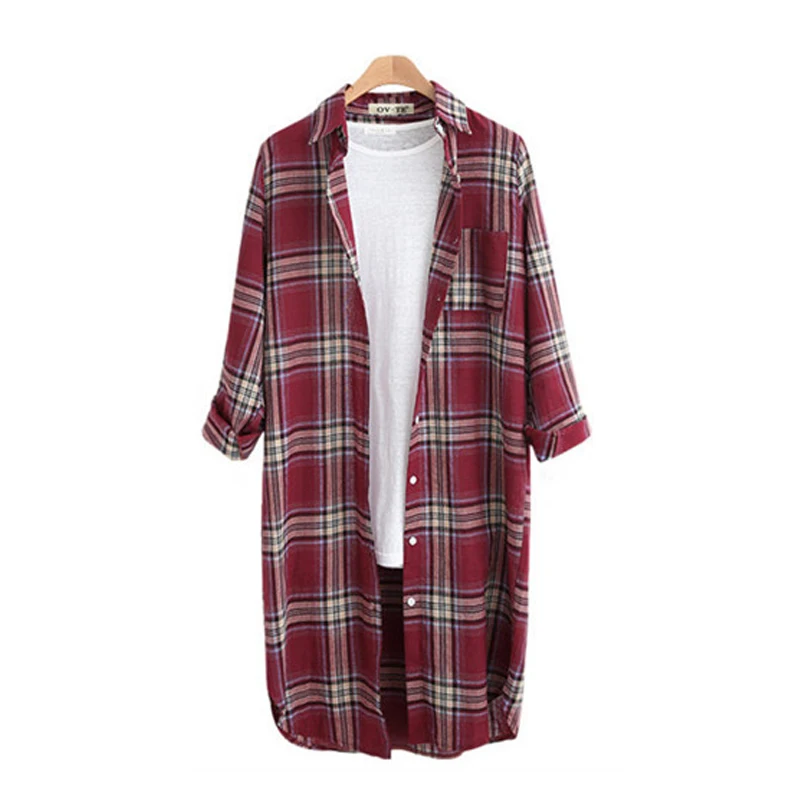 Рубашка женская клетчатая, с воротником на пуговицах, длинным рукавом, 2021, весна-осень, длинные топы Блузы