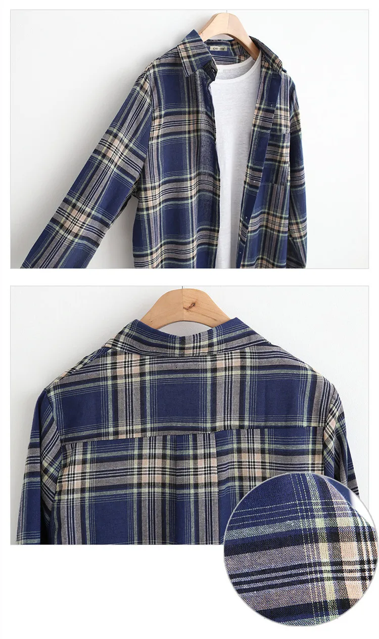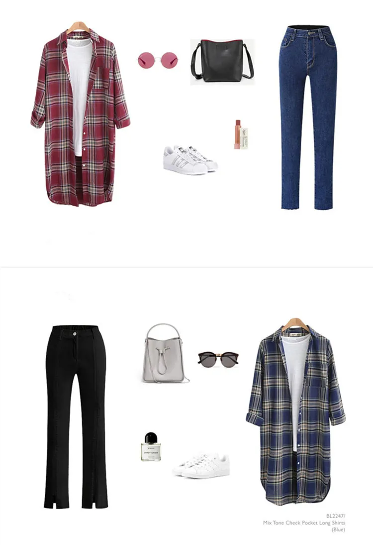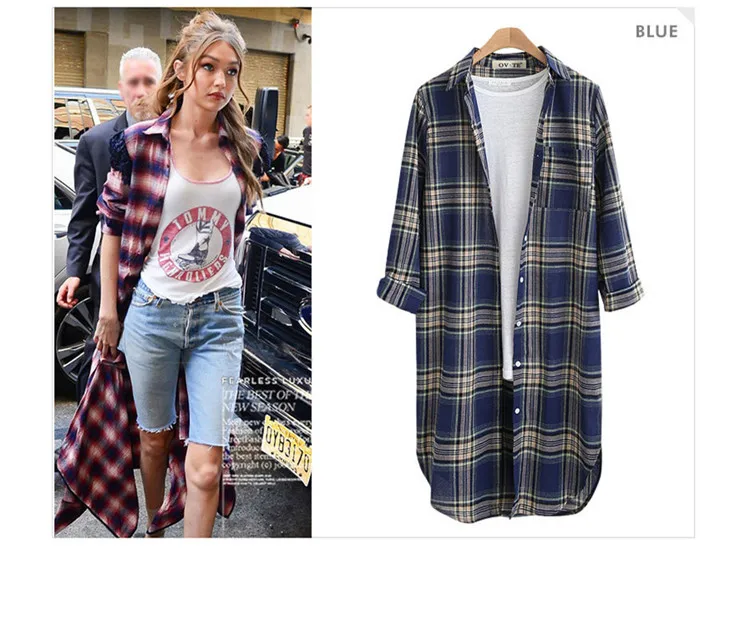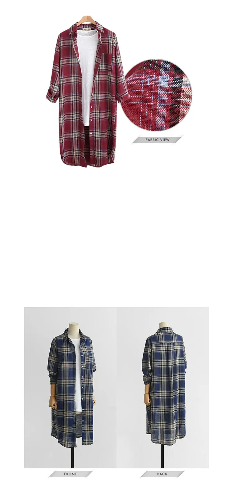 Рубашка женская клетчатая, с воротником на пуговицах, длинным рукавом, 2021, весна-осень, длинные топы Блузы