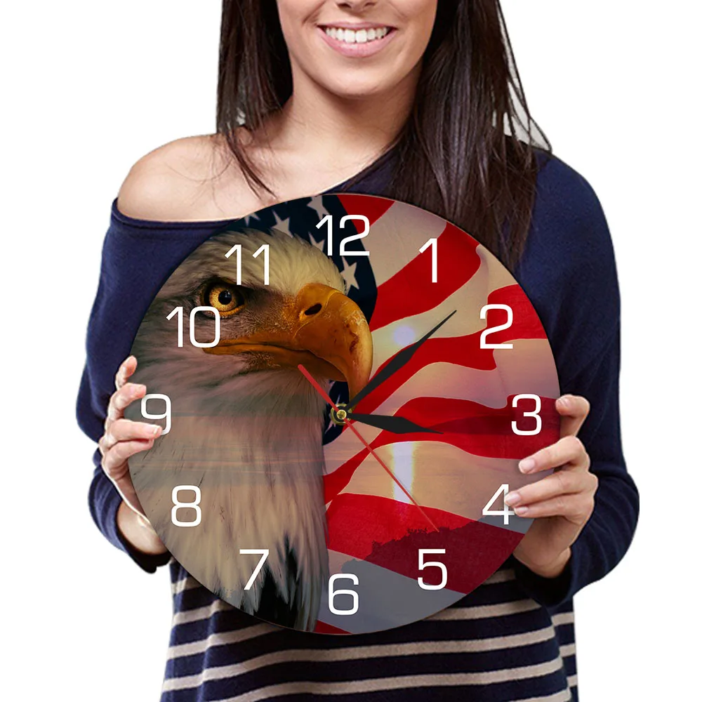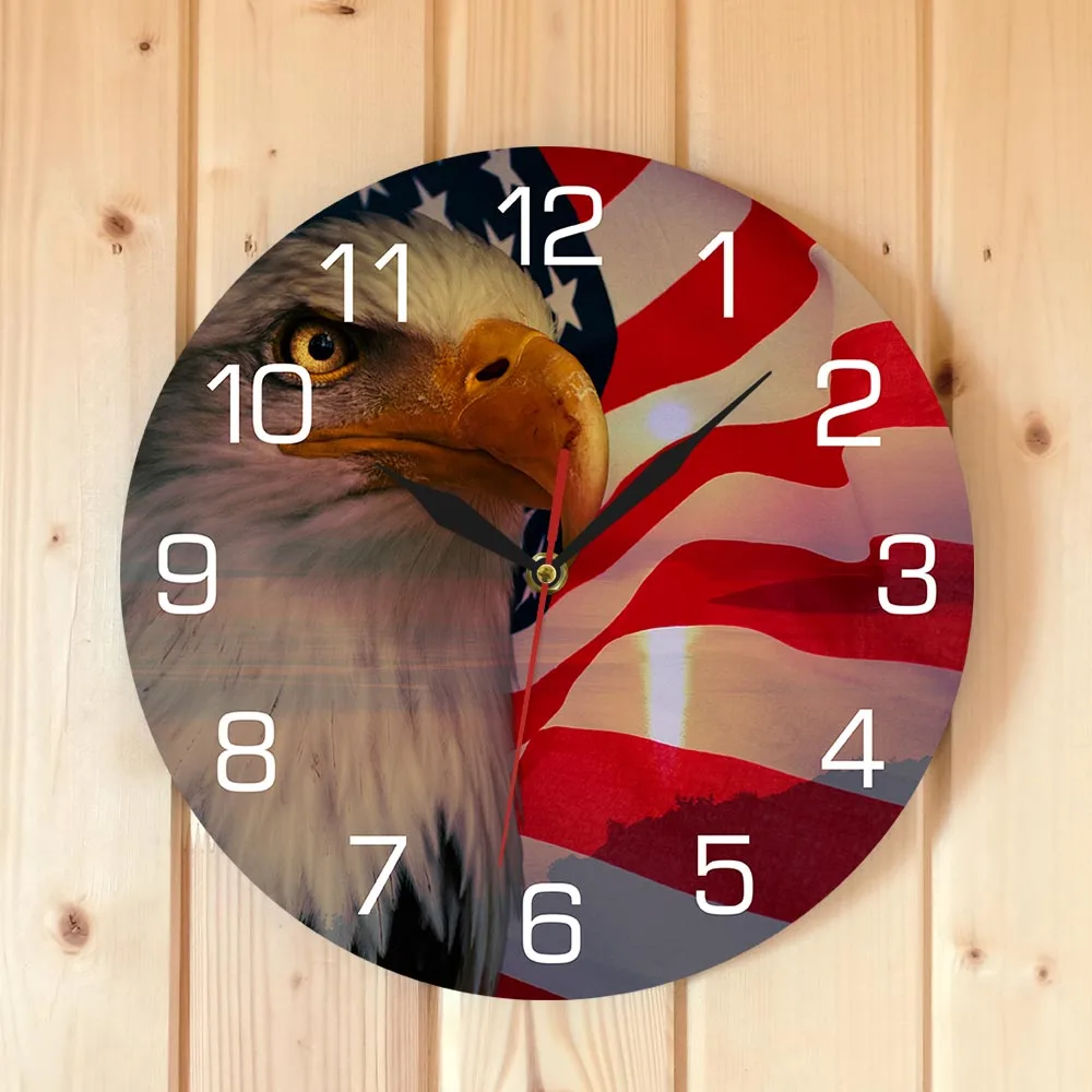 Патриотизм, американский флаг, кварцевые часы, патриотический Белоголовый Орлан, принт, настенные часы, звезды, полосы, независимость, интерьер, акриловые часы