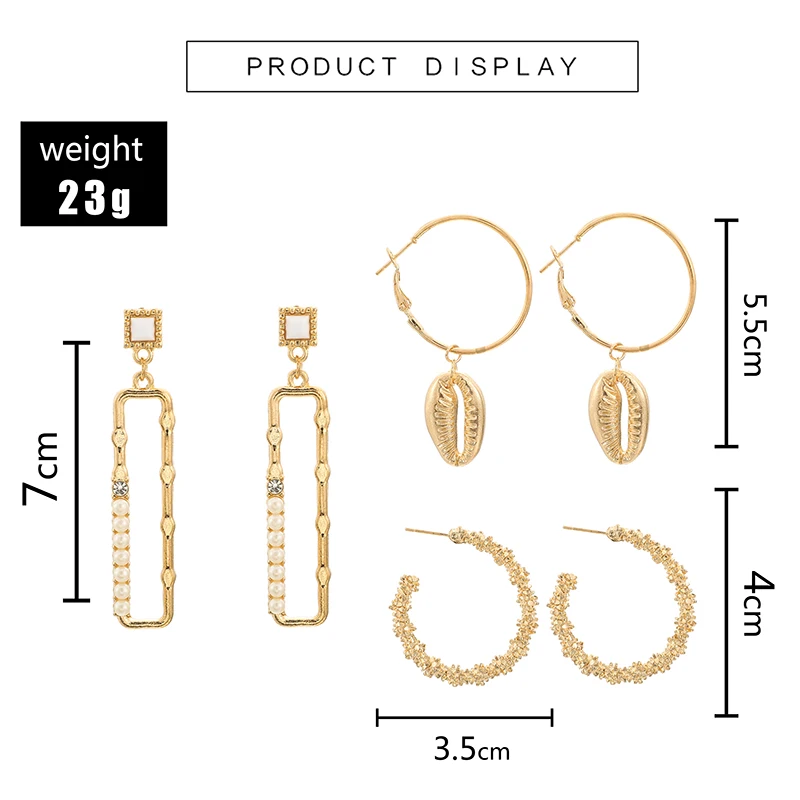 Набор женских геометрических серег-гвоздиков Tocona, 6 шт.компл., в стиле панк-рок, с ракушками, ювелирные изделия, жемчужные аксессуары, 8649