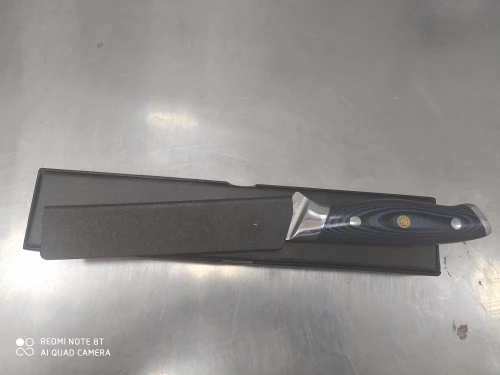 Товар дошёл до Греции быстро. Нож классный. Нравится все - цвет рукоятки, балансировка, вес, красивое лезвие. Заточка на троечку, но это у всех так. Точили на заводе 600 грид. Но это было ожидаемо. Заявленое качество стали, нужно будет проверить. В работу его пока не запускал, есть другие, но этот, в плане эстетики, шикарен. Продавцу удачи и процветания в бизнесе.