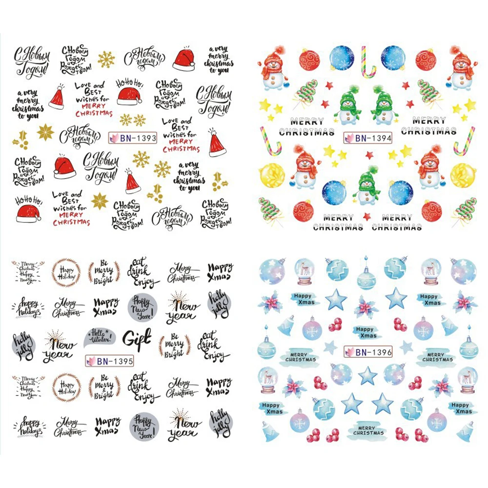 Наклейки для ногтей зимние рождественские в виде букв