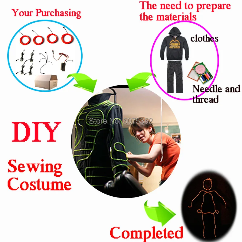 Горячая Распродажа, светодиодная подсветка, внешний вид, Эл. Провод, костюм, новечерние, светящийся мигающий костюм, DIY материал