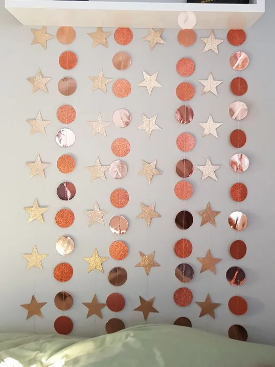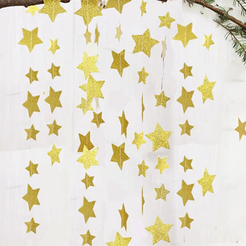 7 шт./компл. розовое золото перфорацией в виде звезд Бумага гирлянда настенный детский кулон День рождения Baby Shower свадебный Декор Рождество баннер 2,43/Шт/Партия 1