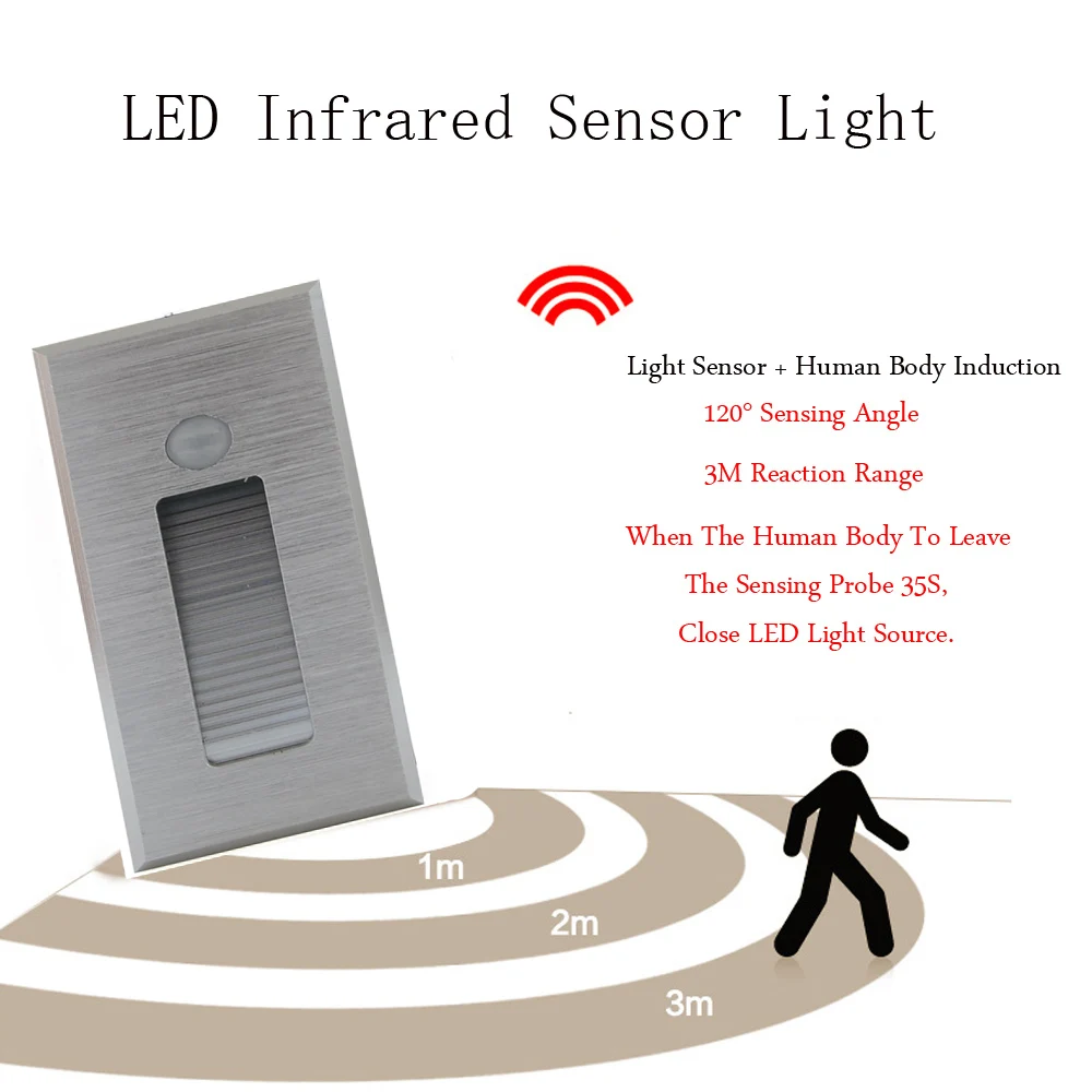 Простой Встраиваемый светодиодный светильник для лестницы, 100-240 В, инфракрасный датчик движения из PIR, настенный светильник, светильник для подножки лестницы, шкафа