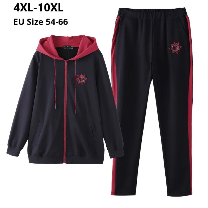 Плюс размер 10XL 8XL 6XL 4XL, Российские размеры 66 62 58 54, с длинными рукавами Femme весенне-осенний спортивный костюм женские толстовки Топ и штаны женские спортивные комплекты из двух предметов