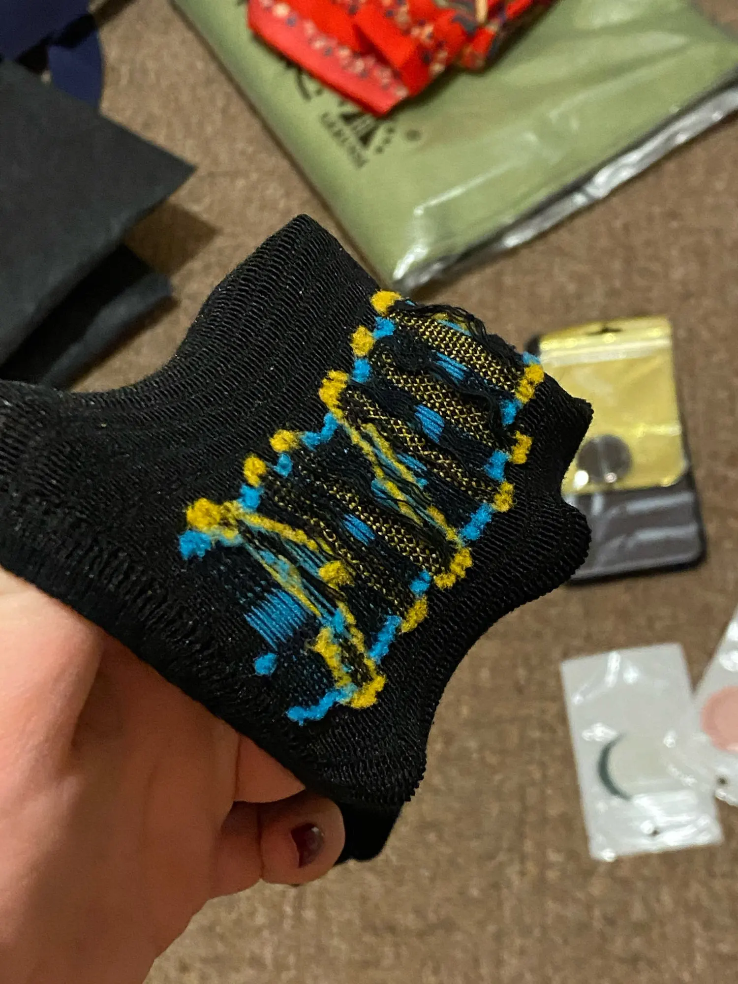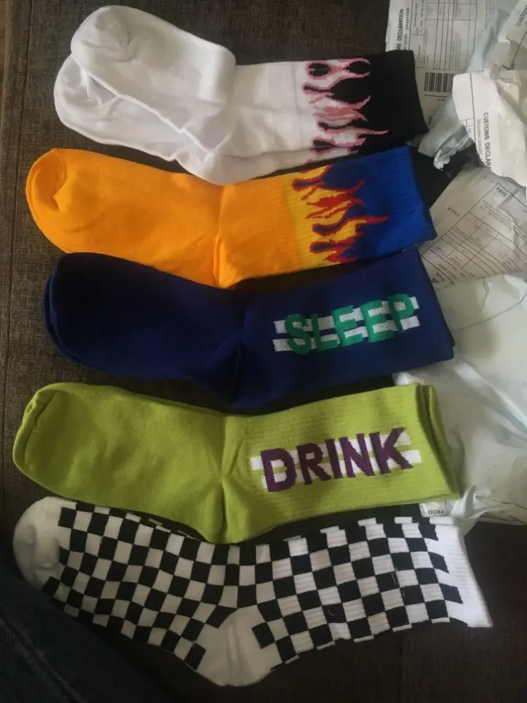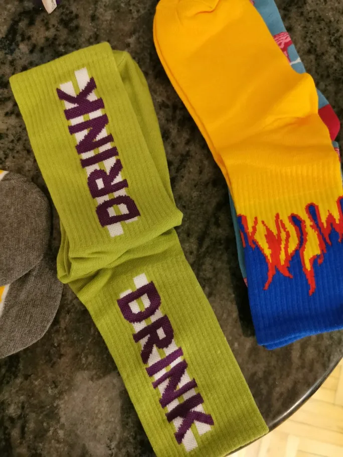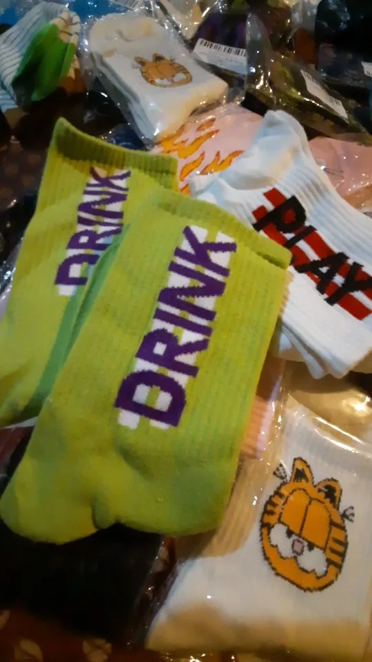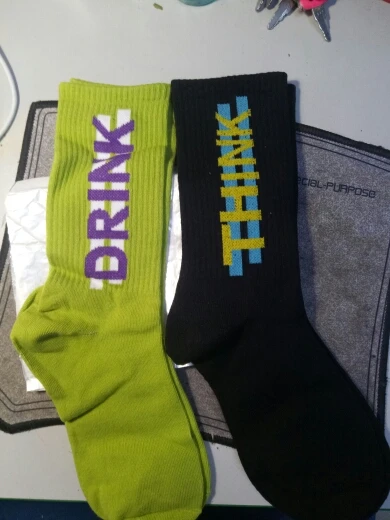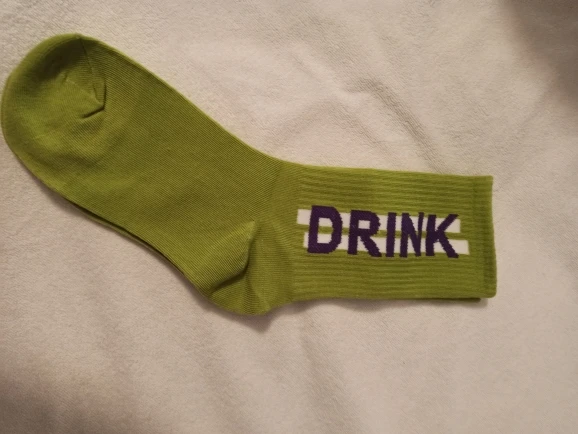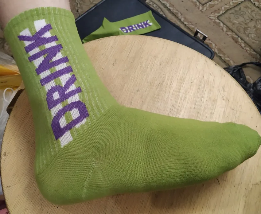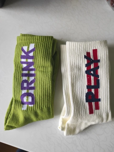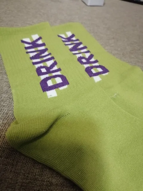 Заказывала зелёные носки с нпдписью drink ожидая, что они будут неонового цвета. На деле же - грязно-зелёный:( огорчена