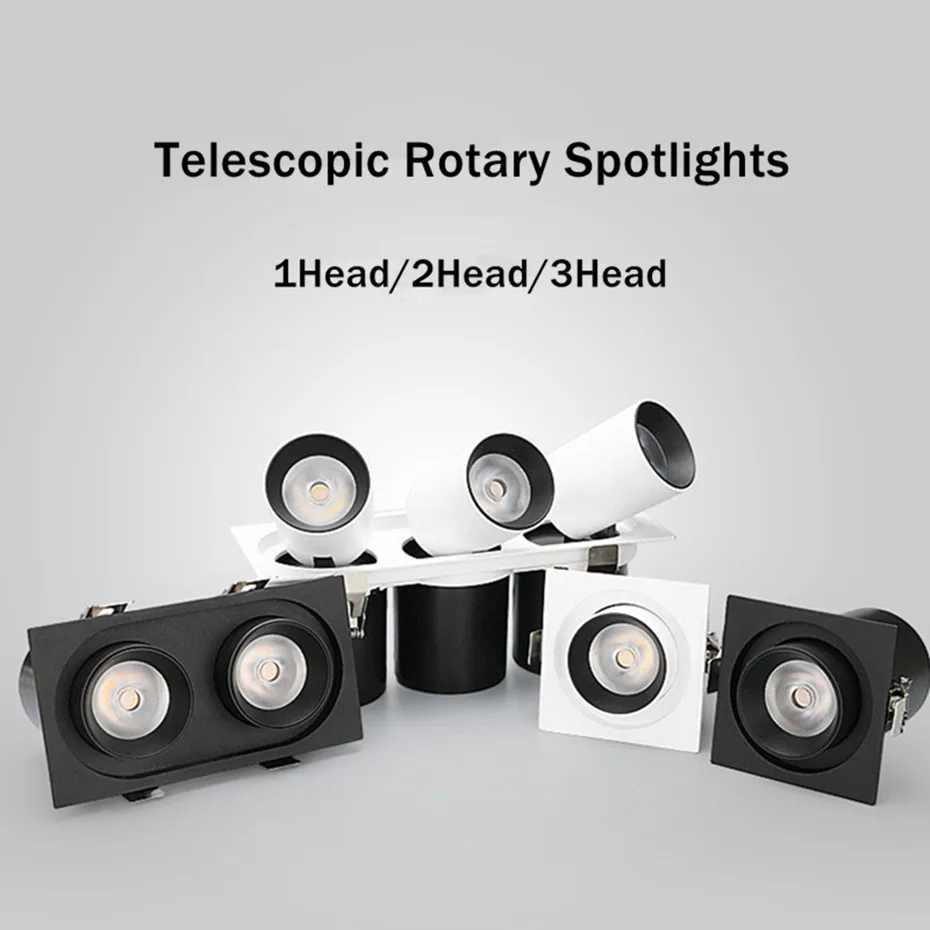 Потолочный светильник с двойной головкой, светодиодный прожектор, встроенный потолочный светильник 24 Вт, 20 Вт, 14 Вт, для гостиной, простой, скандинавский, регулируемый и вращающийся светильник CREE COB