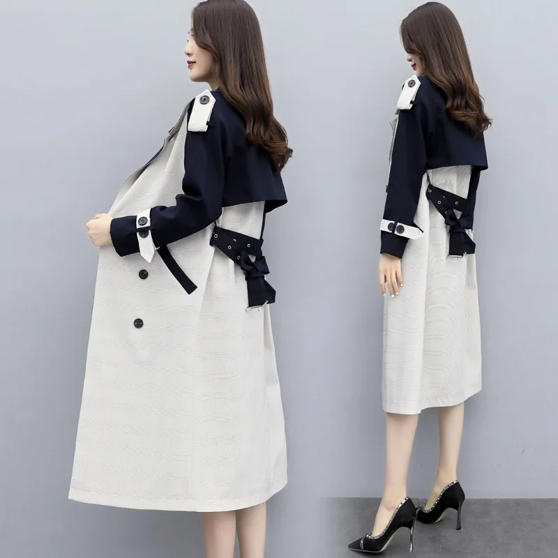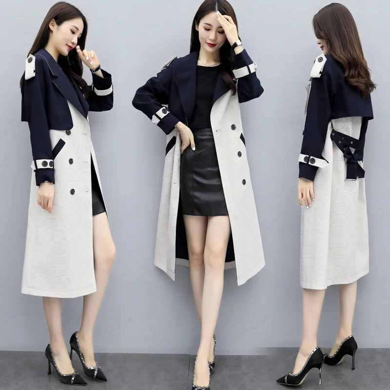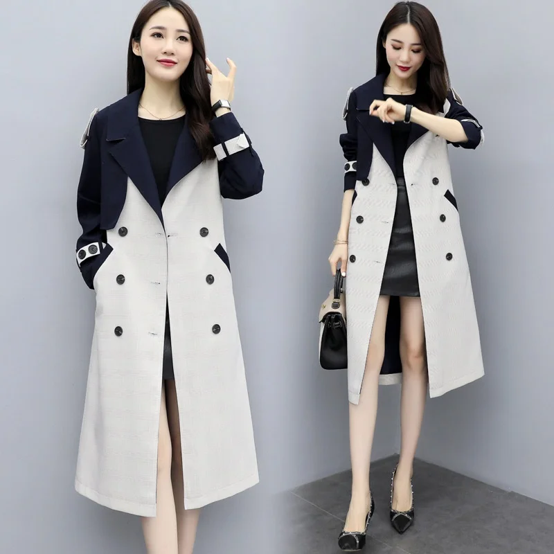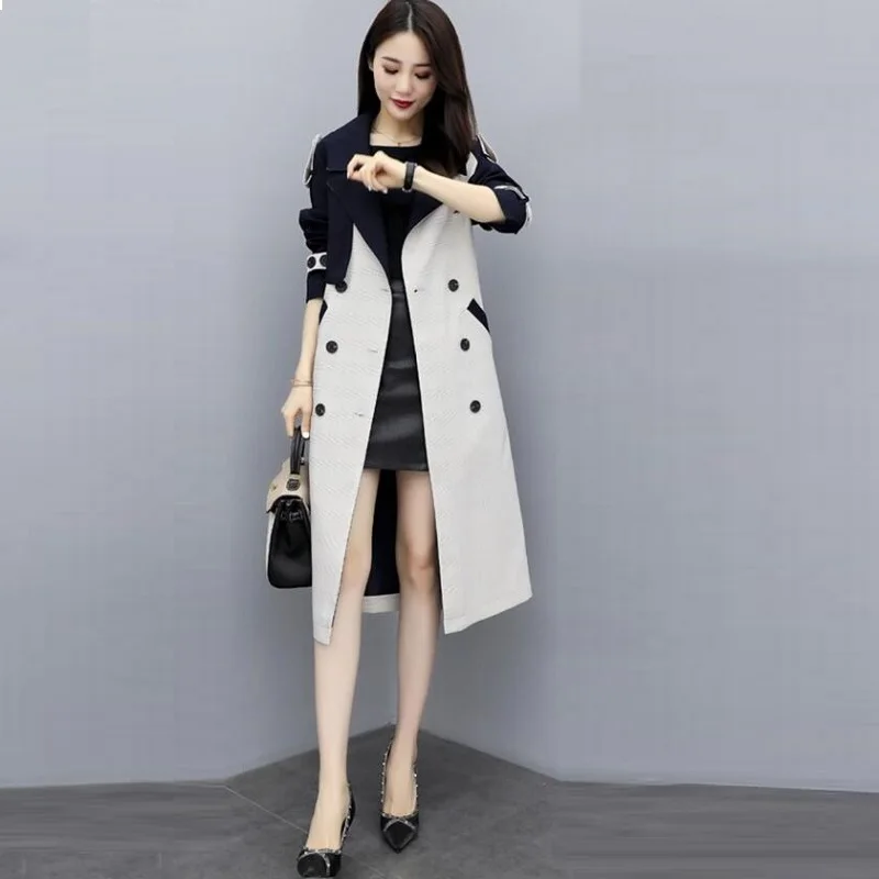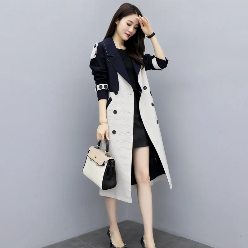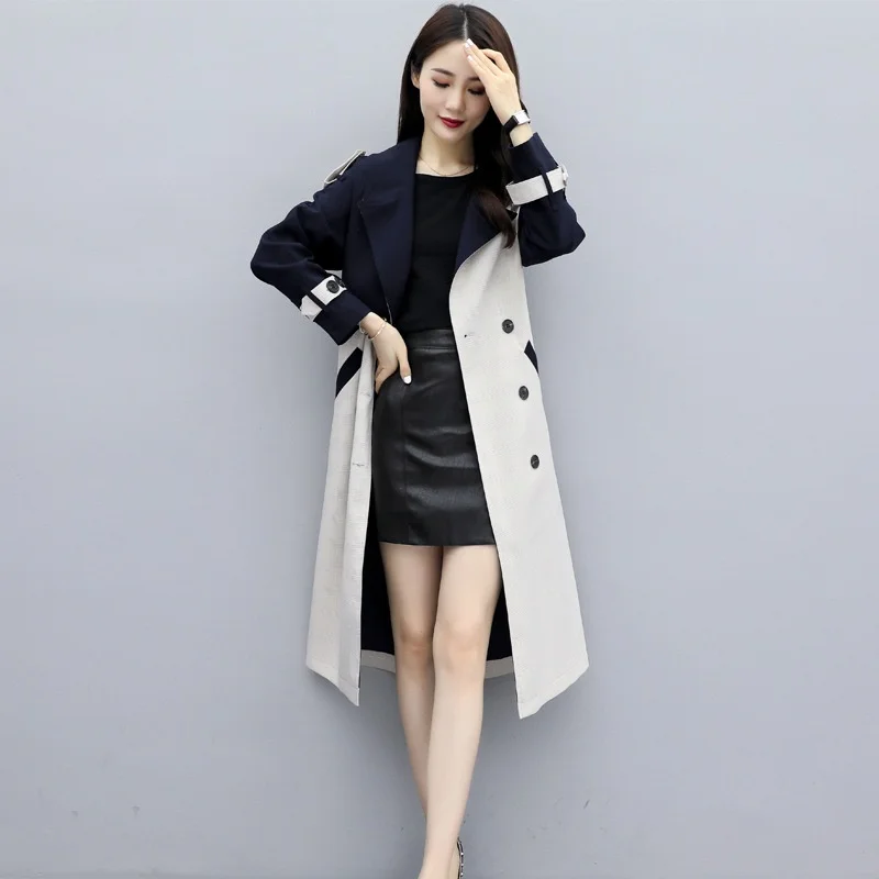 Женское длинное пальто с поясом, двубортное пальто составного кроя в Корейском стиле, парка на весну, AA4946