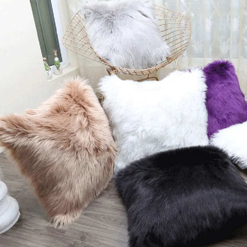 Скандинавская плюшевая наволочка без сердечника диванные подушки из шерсти, милая подушка для дивана-кровати, меховая наволочка, подушка для принцессы Производство: Цвет: 17 цветов на выбор Материал: полиэстер 45*45 см 490 г Использование: спальня, диван, стул