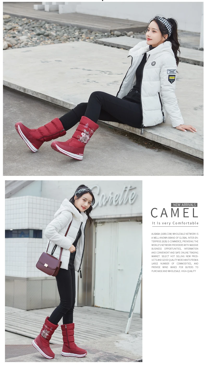 Женские зимние ботинки на платформе, зимние ботинки, толстые плюшевые водонепроницаемые Нескользящие ботинки, женская зимняя обувь, теплые меховые женские ботинки
