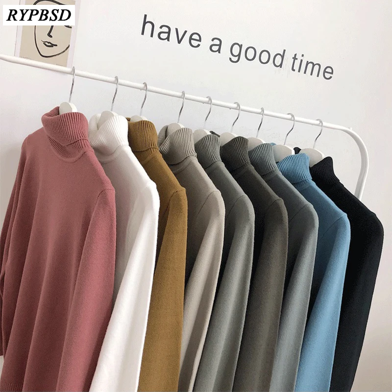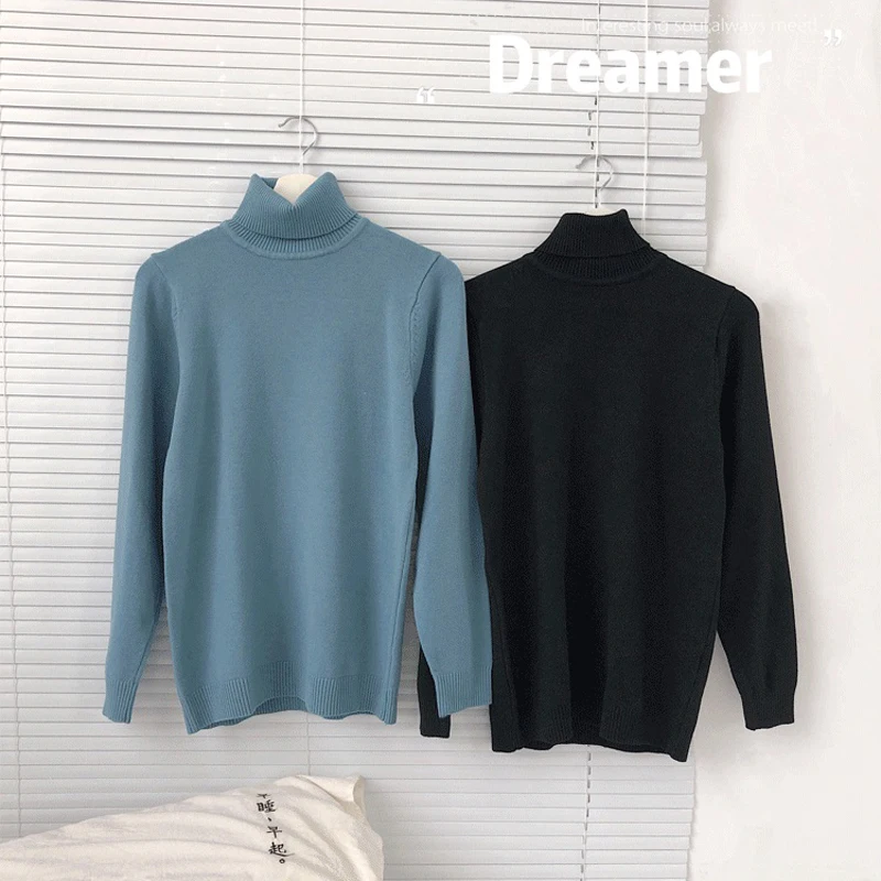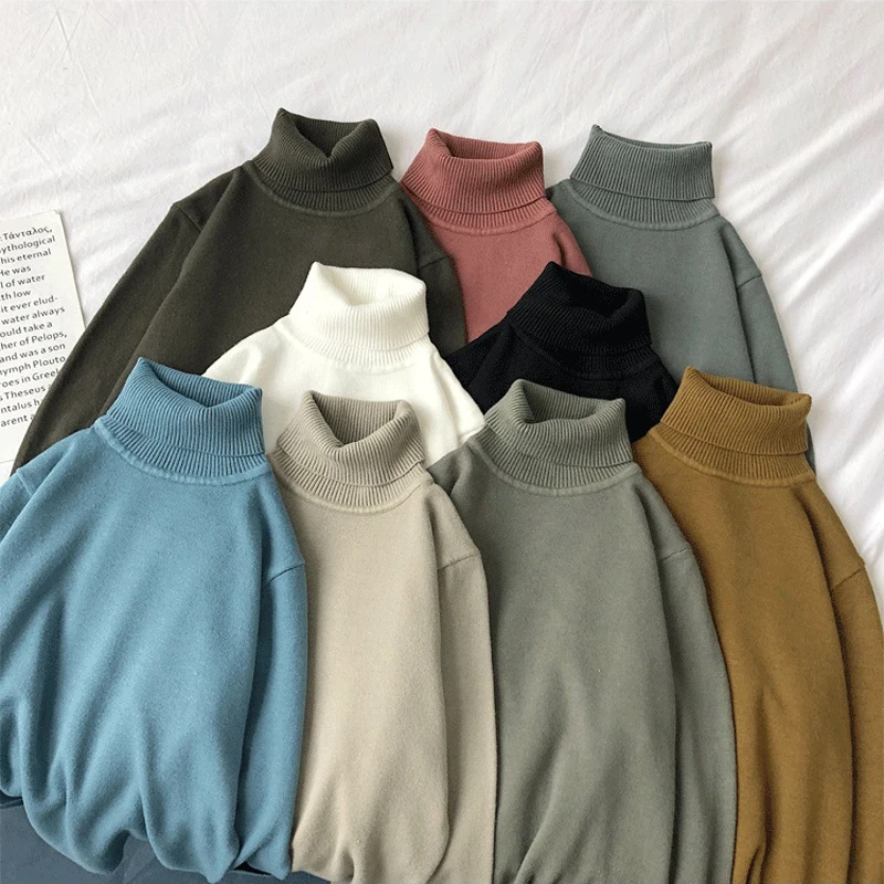 Мужской трикотажный свитер-водолазка, однотонный теплый мягкий эластичный шерстяной пуловер в Корейском стиле, зима 2022