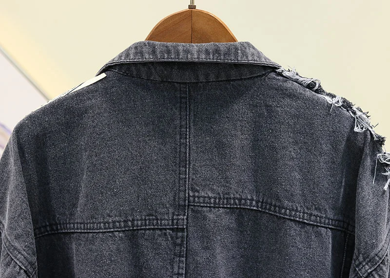 Женская джинсовая куртка с длинным рукавом, свободного покроя