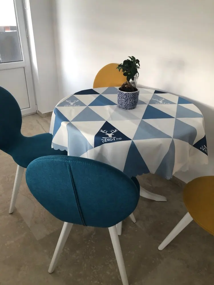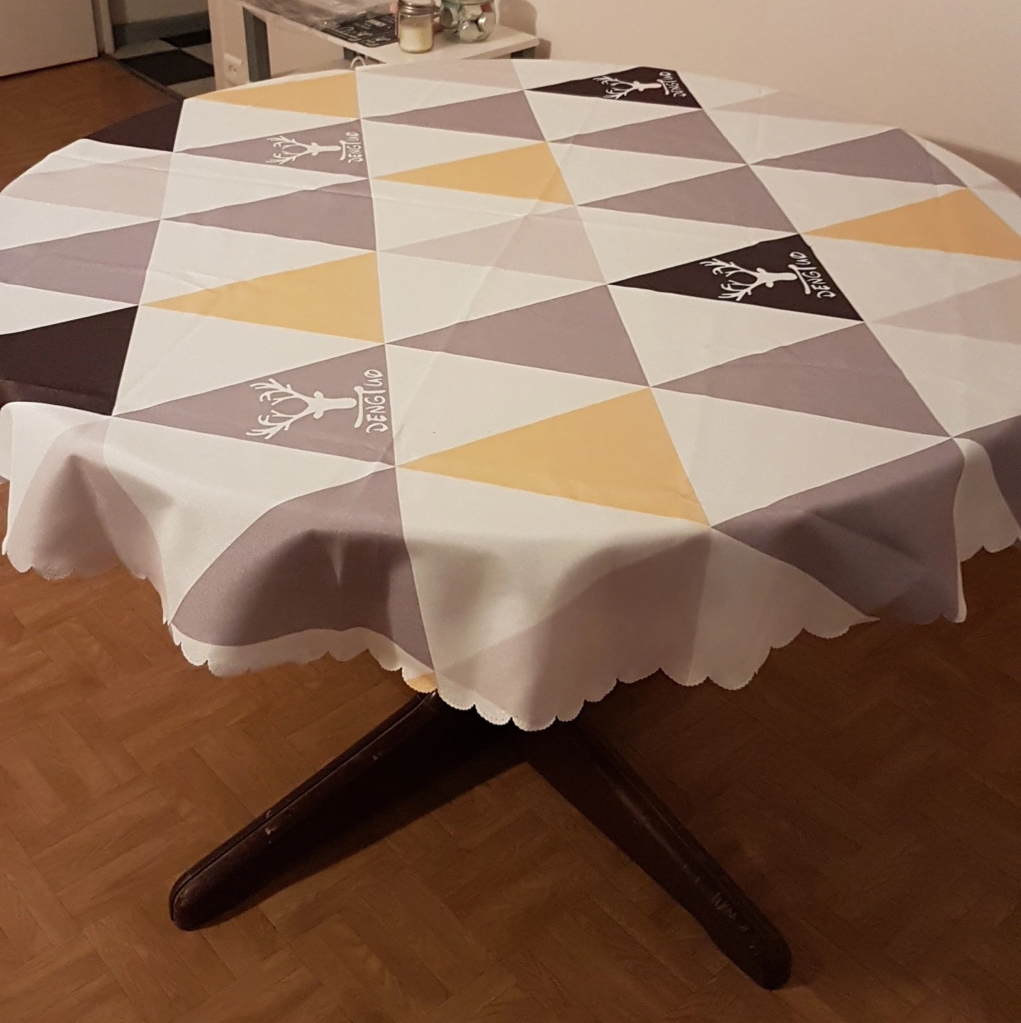 Я думал, что это было для стола 120, но они диаметром 120 см, и отделка не согнута. Хорошая ткань.