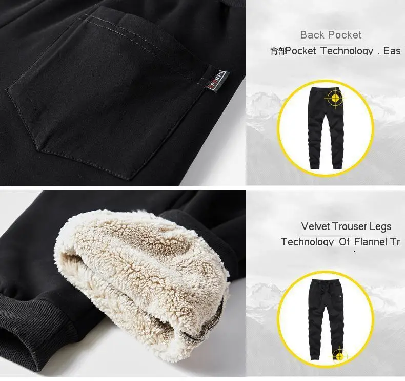 Зимние однотонные Цвет с добавлением овечьей шерсти облегающие штаны для мужчин из овечьей кожи; Брюки больших Размеры Pants7XL 8XL Молодежные повседневные мужские штаны 2019