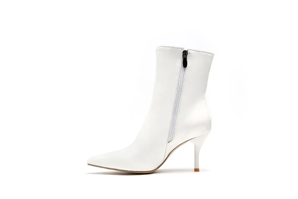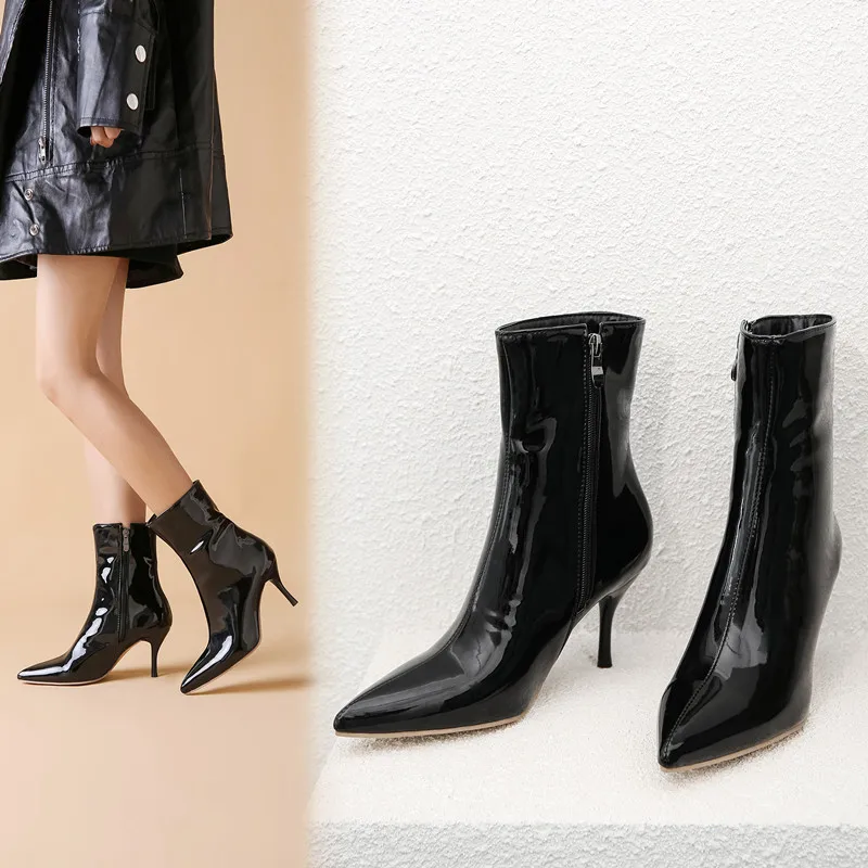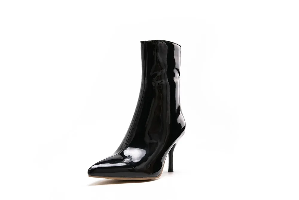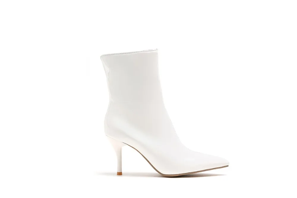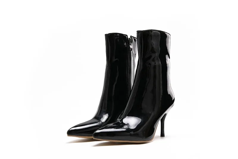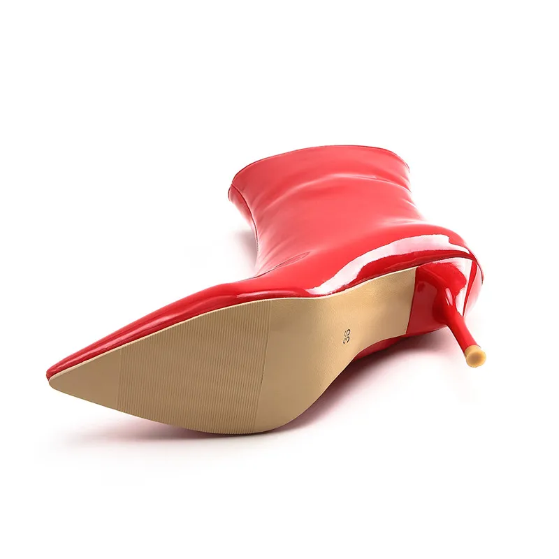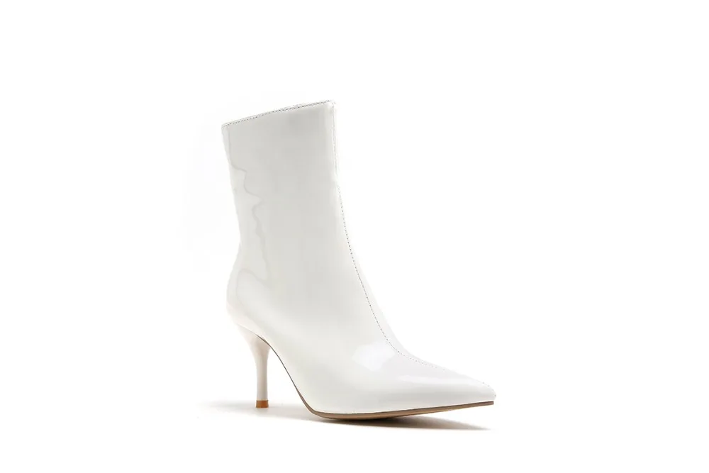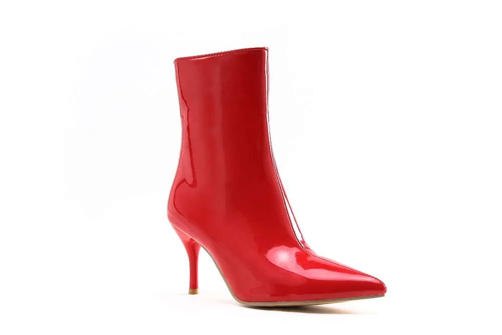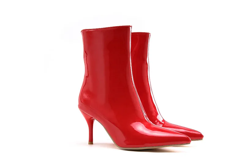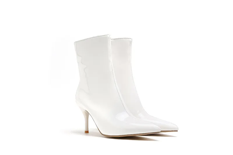 Ботинки женские из лакированной кожи, на высоком устойчивом каблуке, с острым носком, черные, белые, красные, 39