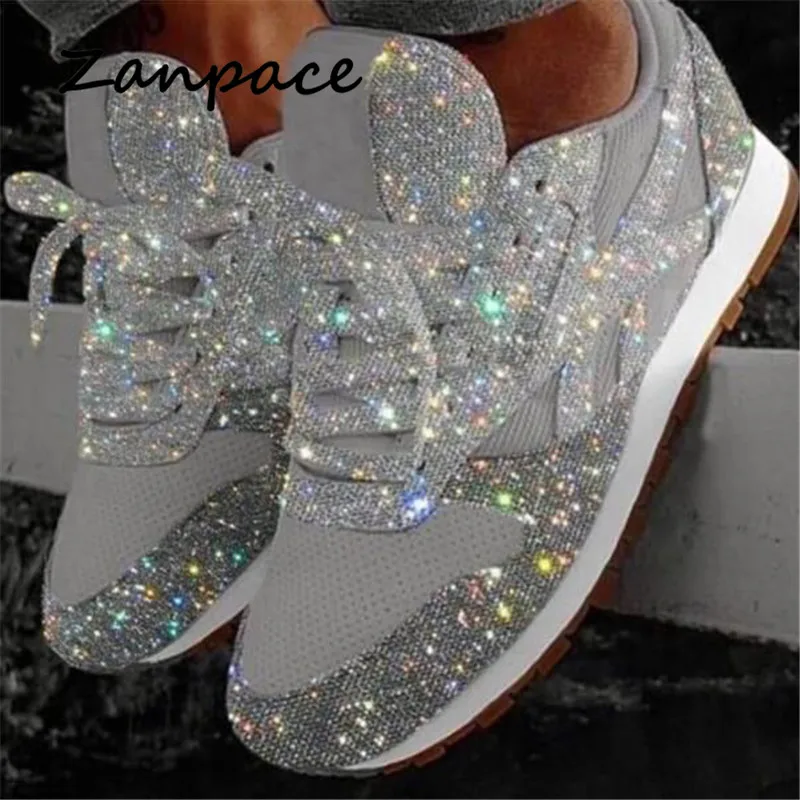 Кроссовки ZANPACE женские со стразами, повседневная нескользящая обувь, черные, большие размеры 43, 2019
