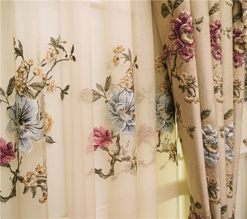 Европейские роскошные виллы, шторы с вышивкой для окон гостиной, ше...
