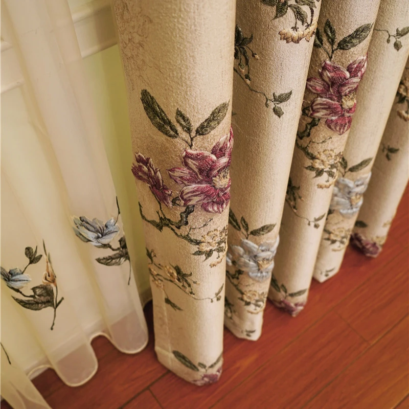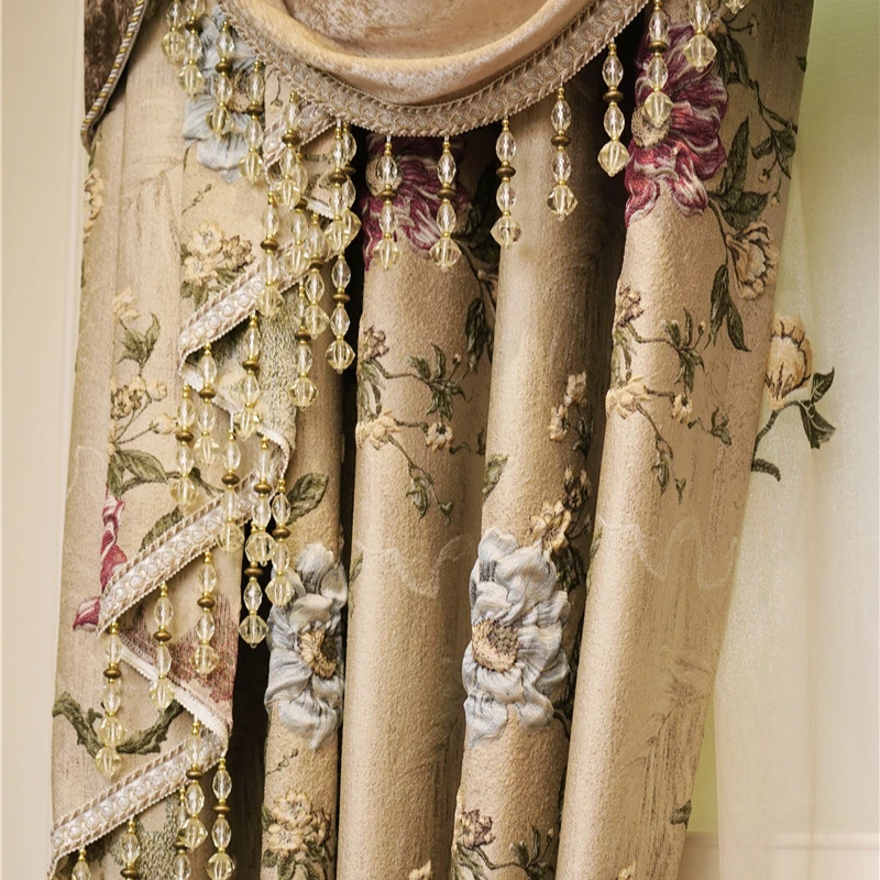 Шторы затемняющие в европейском стиле, шениль с вышивкой, вилла, бе...