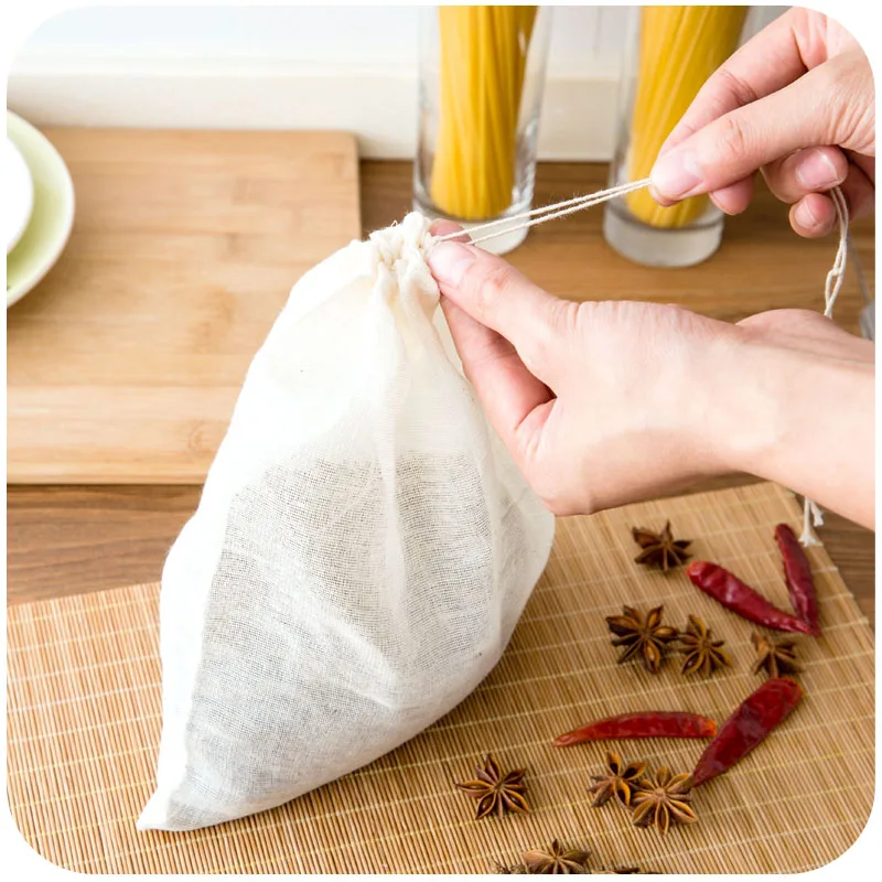 Мешок из хлопчатобумажной ткани с фиксатором, сетка сито для специй, фильтр китайская медицина, травяной шарик, кухонные инструменты для приготовления пищи, дуршлаг суп, чай, пакет, 1 шт.