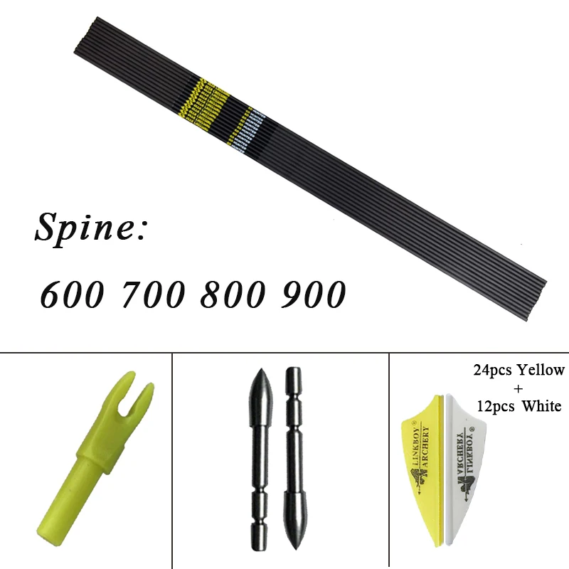 Стрелы из углеродного сплава для стрельбы из лука, 6 шт., стрелы для стрельбы из лука 30 дюймов, диаметр 600 мм, стержень 700, 800, 900, 80 г, наконечники блочного рекурсивного лука, стрелы сделай сам для охоты