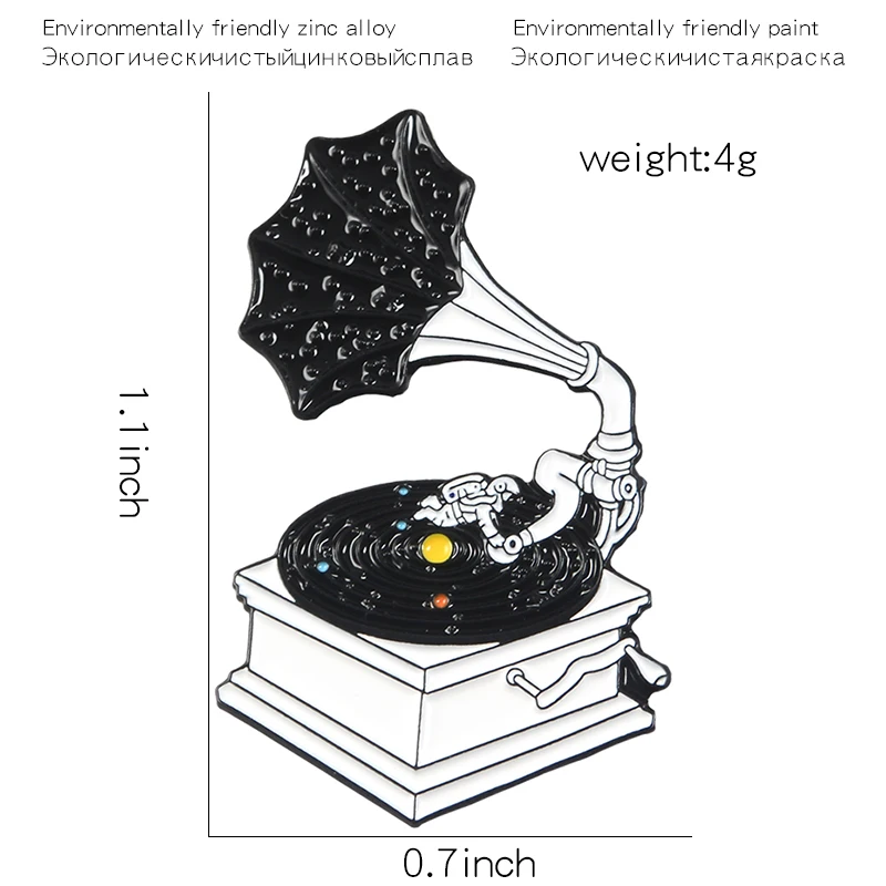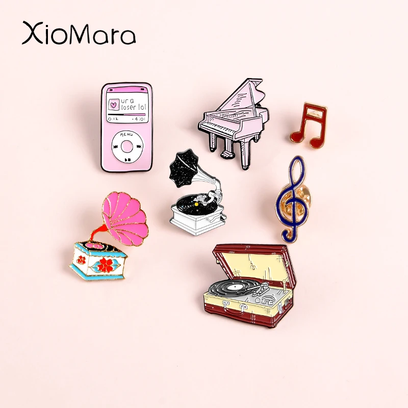 Меломана эмаль на булавке на 80 виниловых пластинок фонограф фортепианная нота старые любимые музыкальный плеер песня металла сумок, головных уборов значок, броши на булавке,