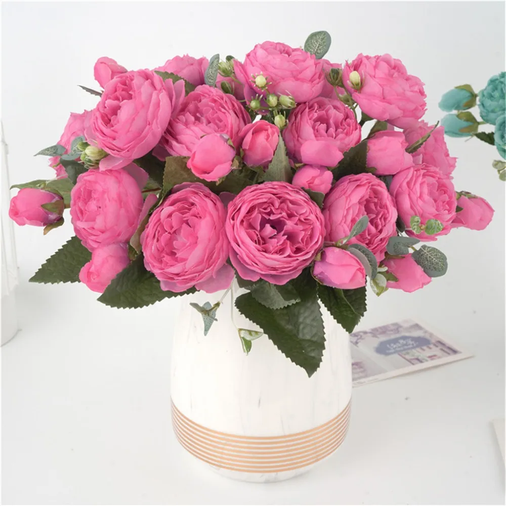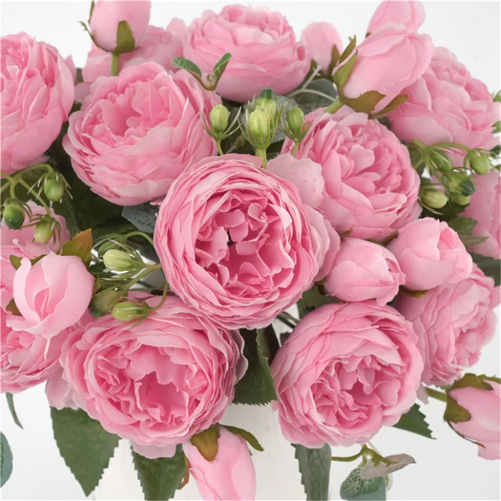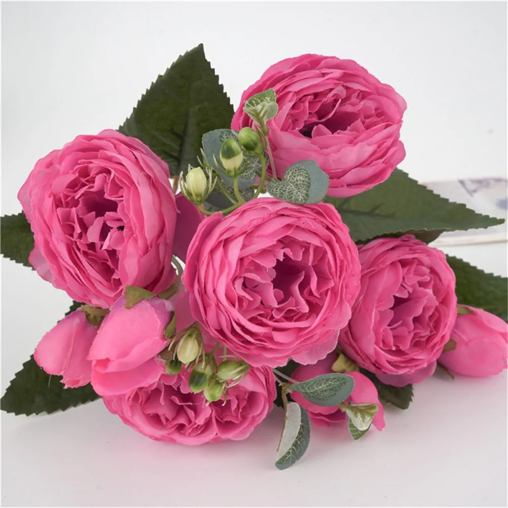 Розовые шелковые искусственные пионы, букет высотой 30 см из 5 больших цветков и 4 закрытых бутонов, недорогие искусственные цветы для украшения интерьера дома и на свадьбе