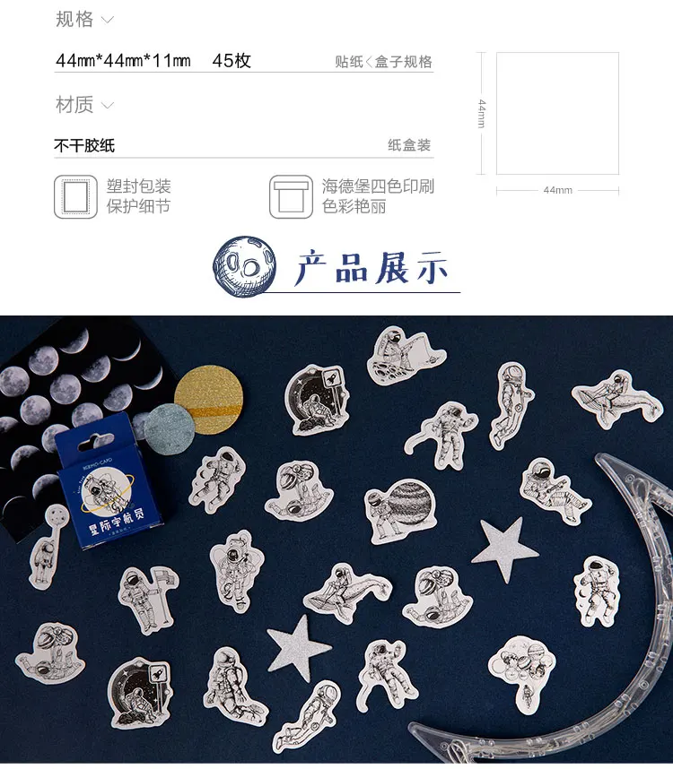 XINAHER 45 шт./коробка, винтажный межпланетный астронавт, украшение, бумажная наклейка посылка, сделай сам, украшение для дневника, наклейка, альбом, скрапбукинг