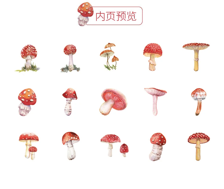 XINAHER 45 шт.кор. винтажный гриб, мини-Декор, бумажная наклейка, упаковка, сделай сам, дневник, украшение, альбом, скрапбукинг
