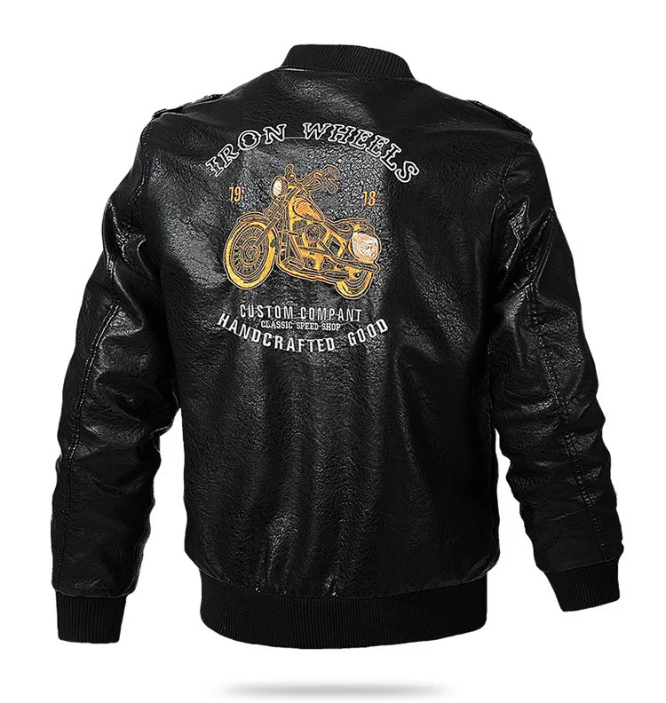 Мужские кожаные куртки и пальто, Мужская мотоциклетная флисовая кож...