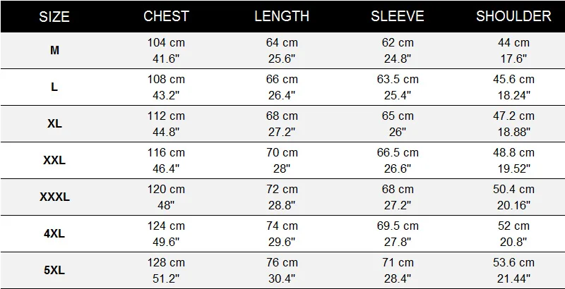 sizeM/165,L/170,XL/175,2XL/180,3XL/185,4XL/188,5XL/190