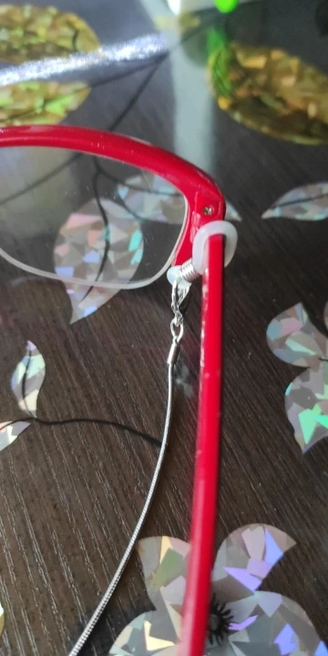 Не очень понравились силиконовые штучки, они не совсем прозрачные и на темных дужках смотрятся не очень, а так цепочка хорошая,