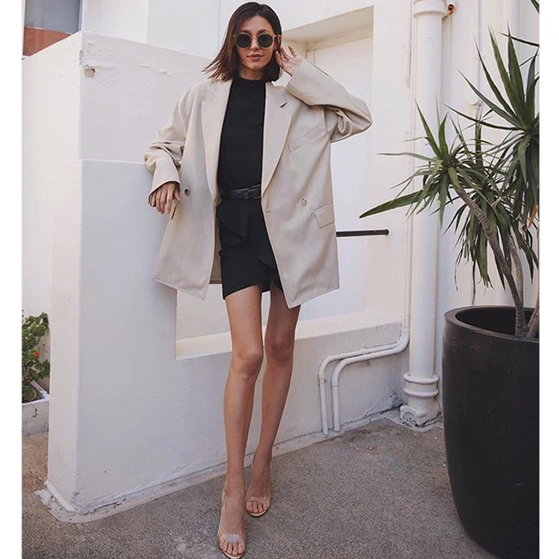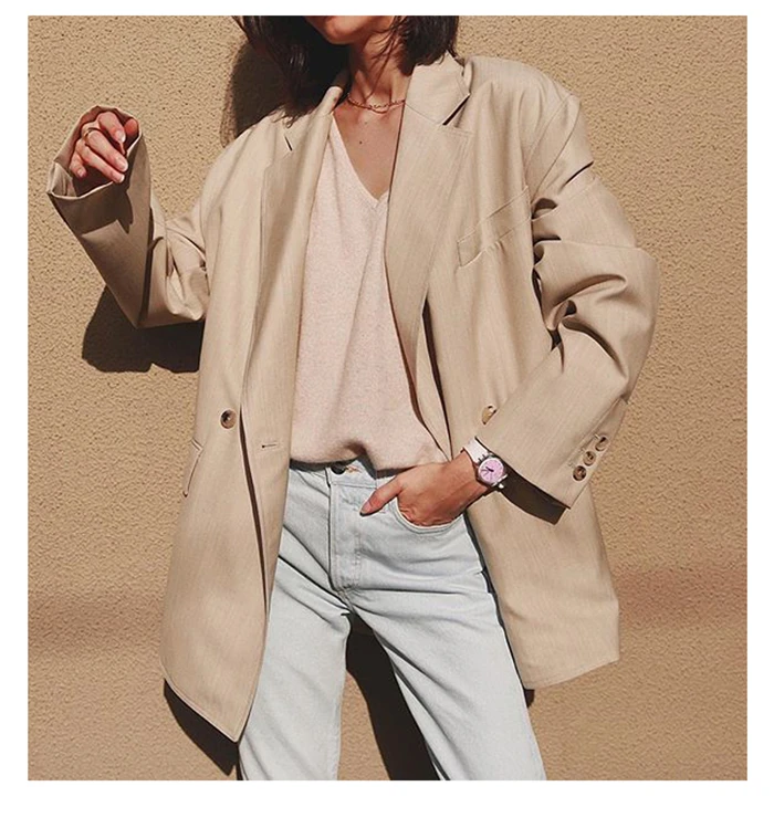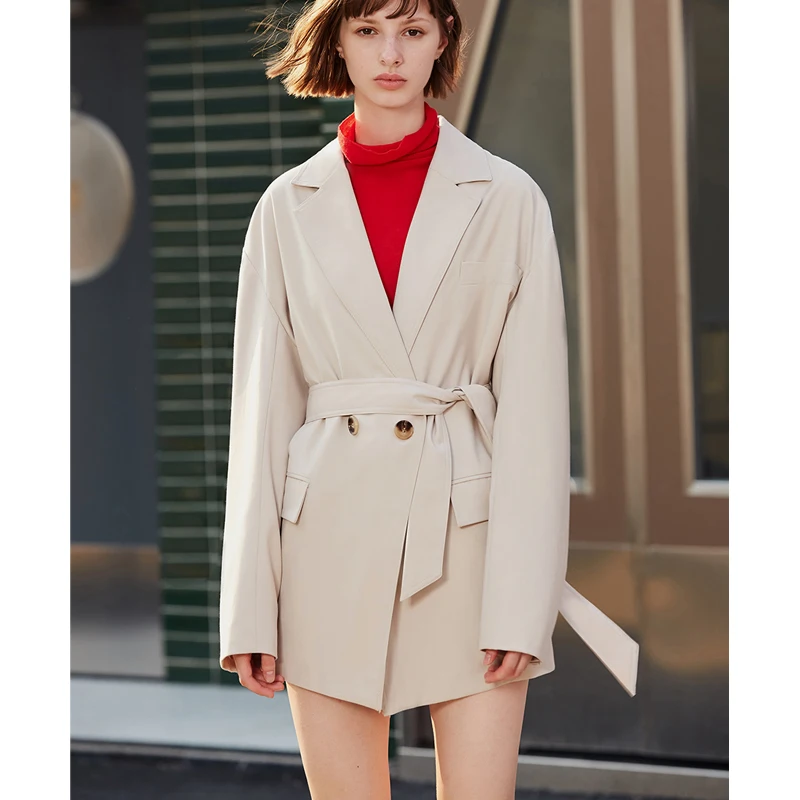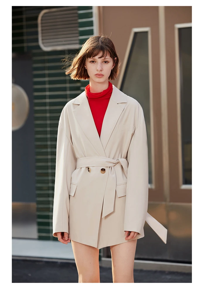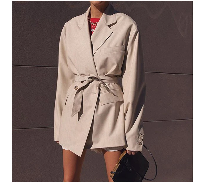 AEL женский однотонный свободный Блейзер на осень и зиму с поясом, уличная женская верхняя одежда, Женский Повседневный двубортный Блейзер на пуговицах