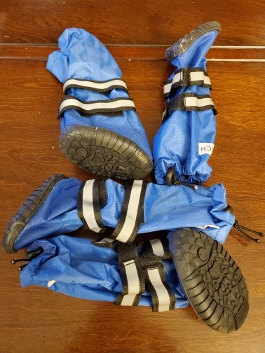 Это качественные ботиночки, но моей собаке они не нравятся. Их трудно положить ботинки на весь путь вниз к лапе. Ей нужно прилегать, чтобы сделать это, это займет больше времени. У меня есть короткие ботиночки, и они подходят легче, и моя собака лучше в них гуляет. Это будет хорошо для тяжелых условий. Много грязи и воды. В них моя собака не будет бегать.