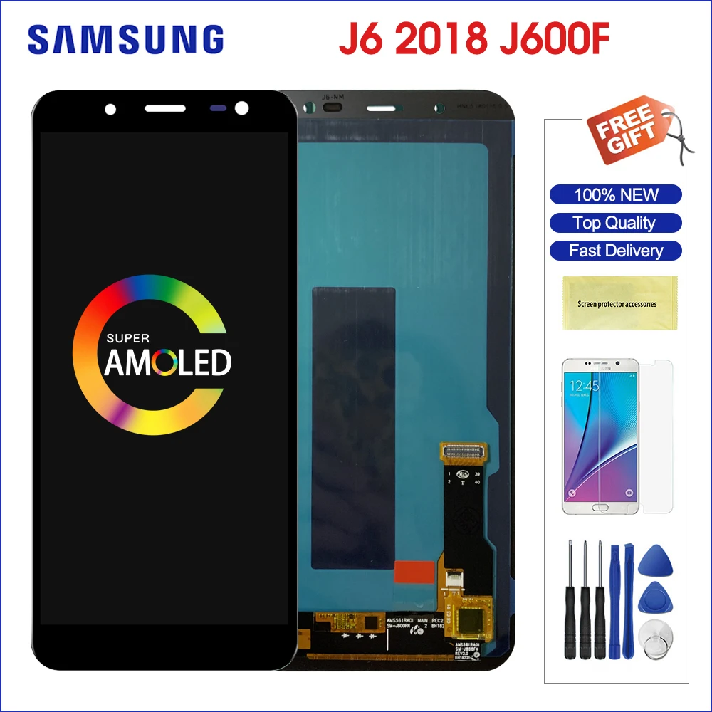 ЖК-дисплей 5,6 "Super Amoled для Samsung Galaxy J6 2018, ЖК-дисплей, сенсорный экран, панель, дигитайзер, детали для Samsung J600 J600G J600F