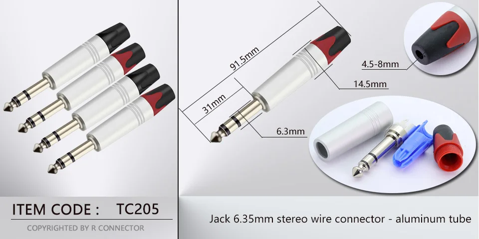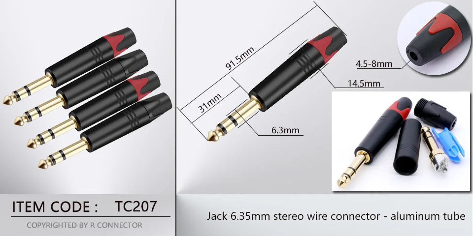 1. Наименование товара: 6,35 мм (1/4 ") Мужской Разъем
