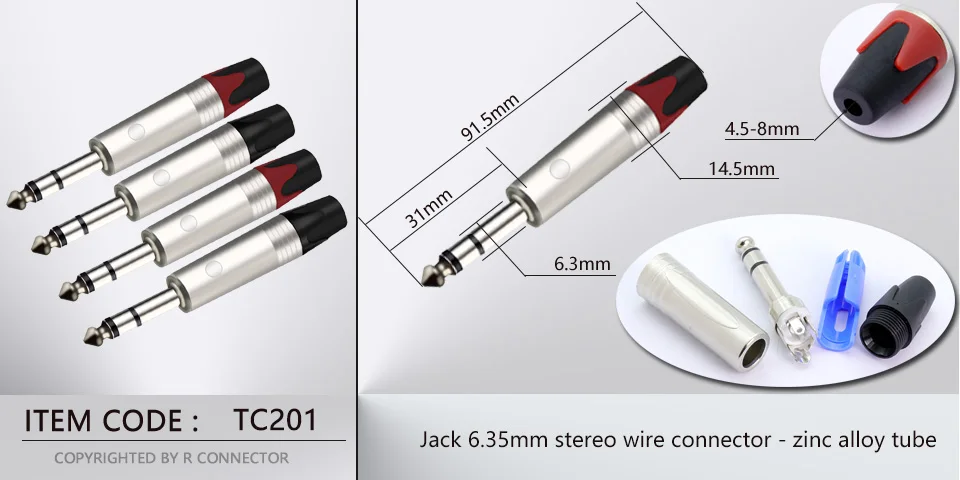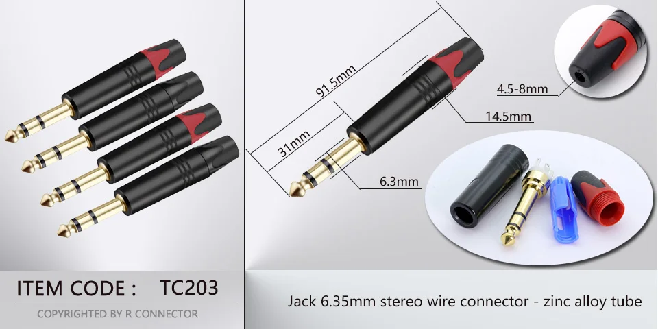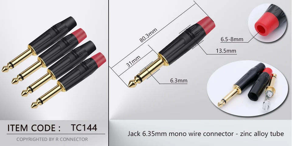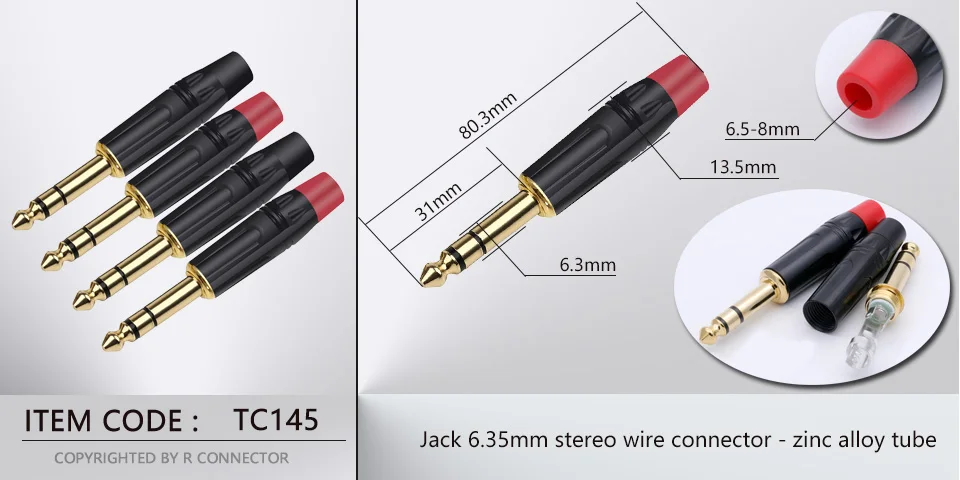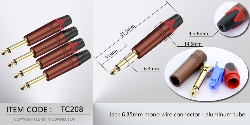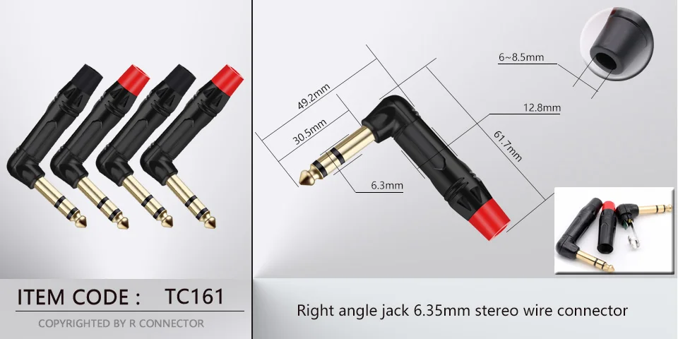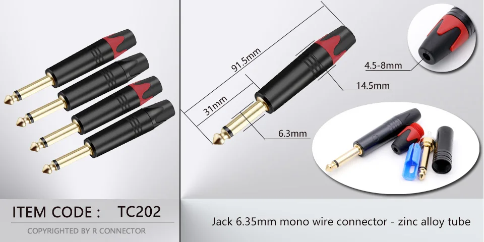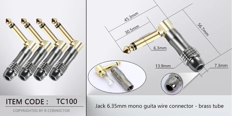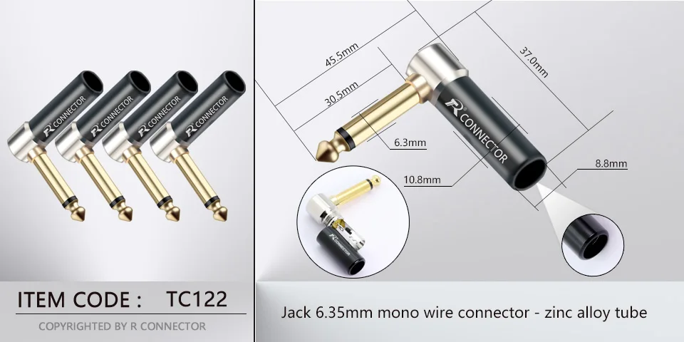 10 шт.лот моностерео разъем 6,35 мм штекер провода разъем гитары ми...