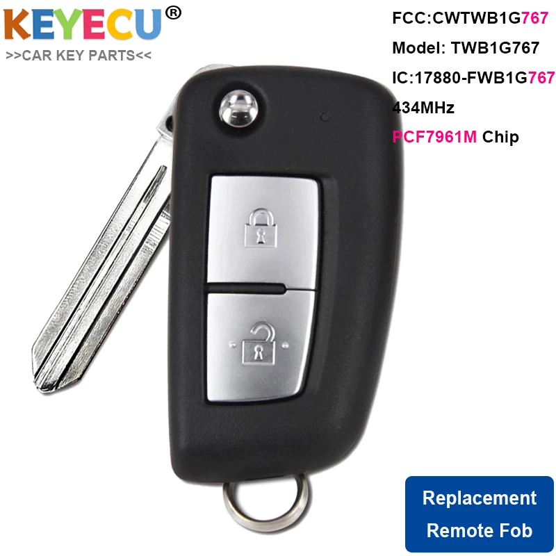 KEYECU 2 кнопки 433 МГц PCF7961M откидной дистанционный ключ для Nissan Qashqai J11 Pulsar C13 Juke F15 X-Trail T32 Micra CWTWB1G767