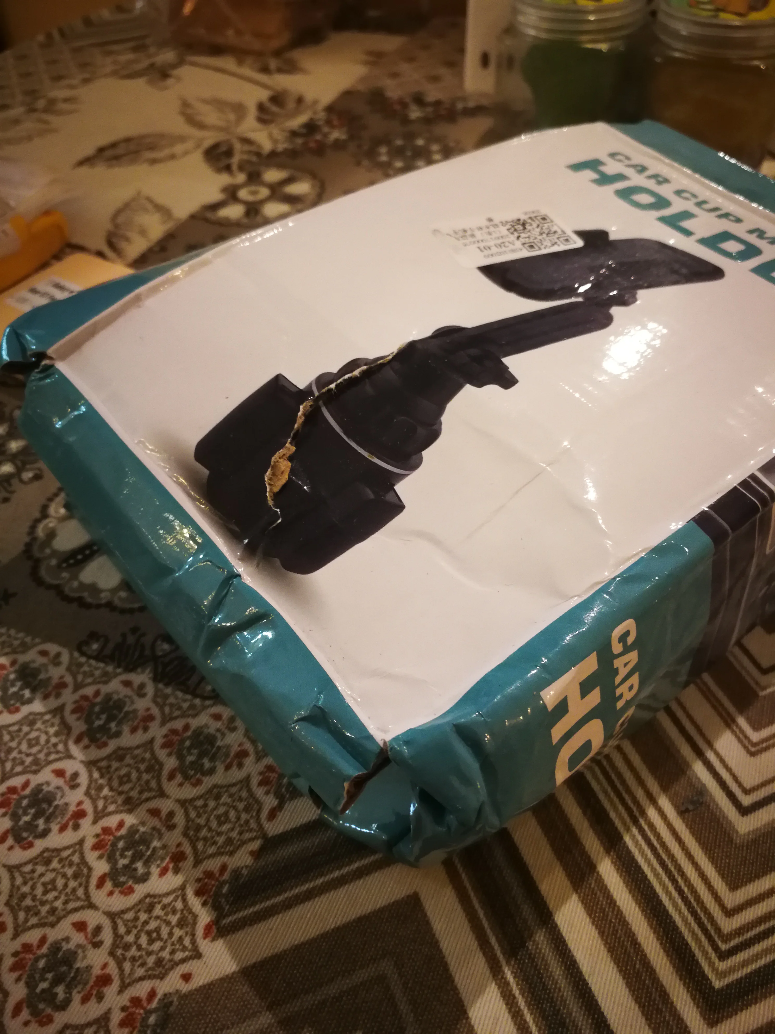 Коробка вся измята, спасибо почте. Держалка целая, полностью устраивает, что ожидал.
