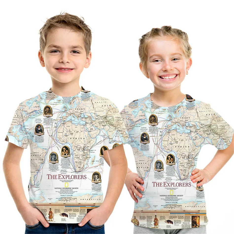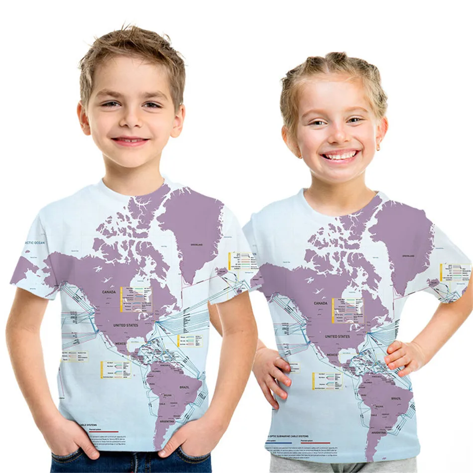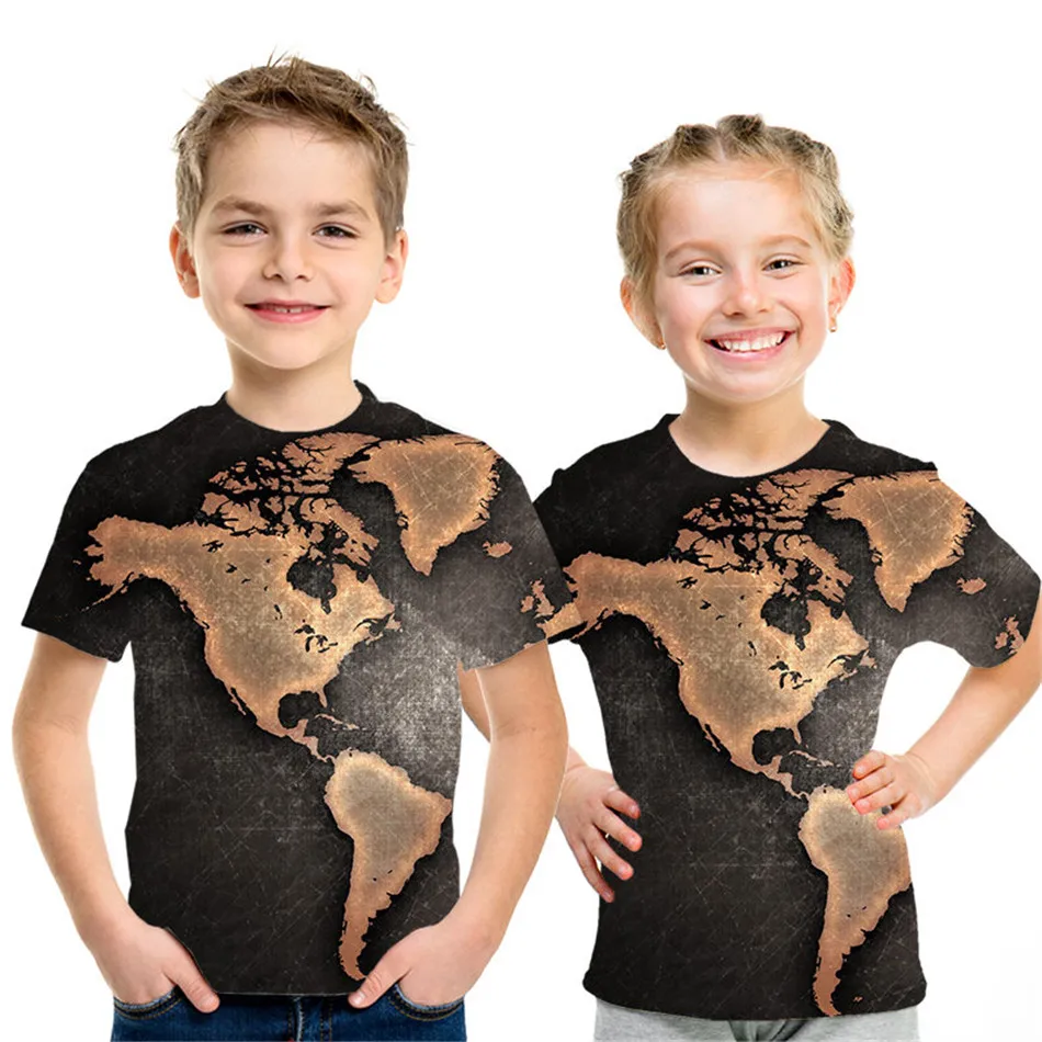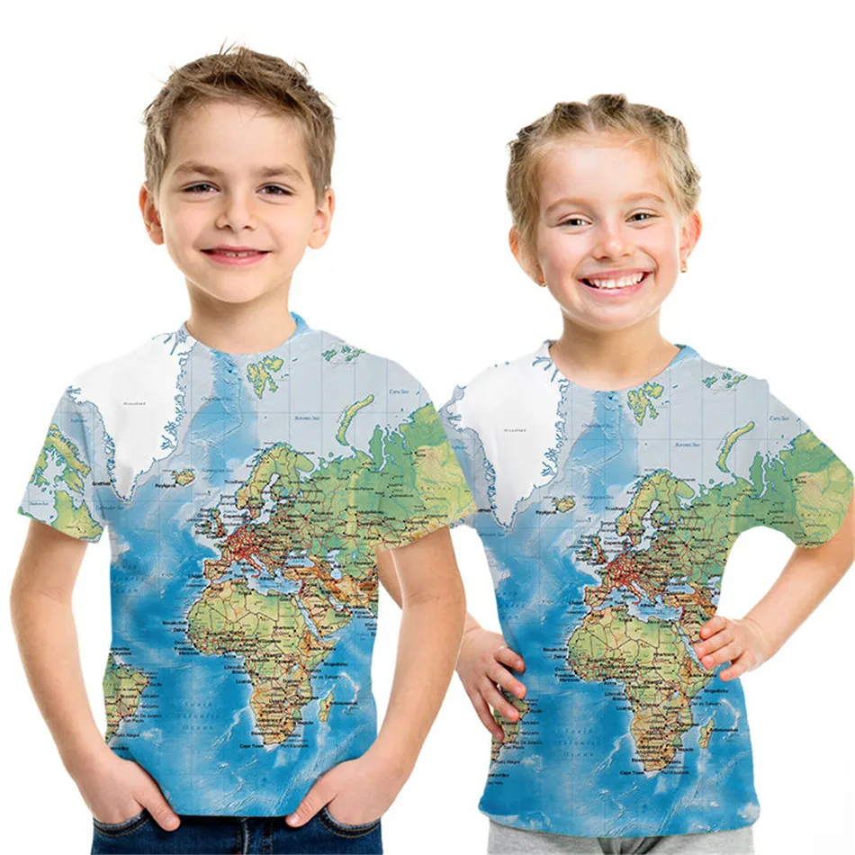 Летняя детская модная 3D футболка, футболка для мальчиков и девочек с принтом карты мира и книг и гор, Детские футболки в стиле Харадзюку, подарок на день рождения