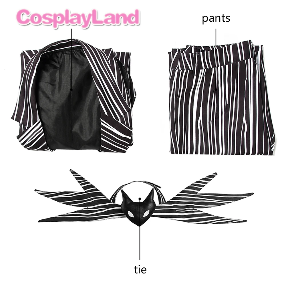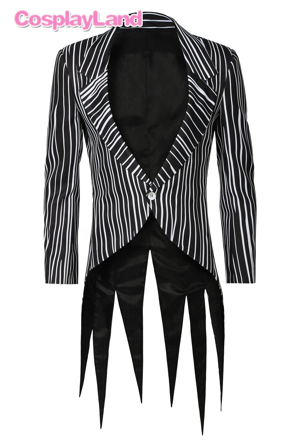 Костюм для косплея Джека Скеллингтона «Кошмар перед Рождеством», карнавальный костюм на Хэллоуин, модный костюм в черную полоску, индивидуальный пошив