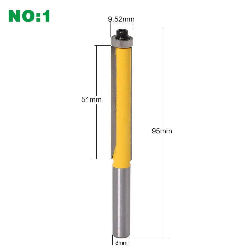 Krachtige 2 "фрезы для фрезы с подшипником для дерева 8 мм хвостовик шаблон бит карбида вольфрама фрезы для дерева