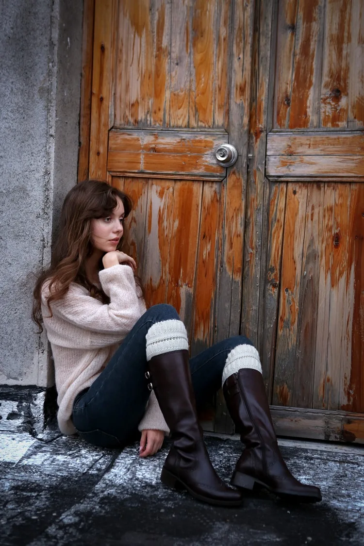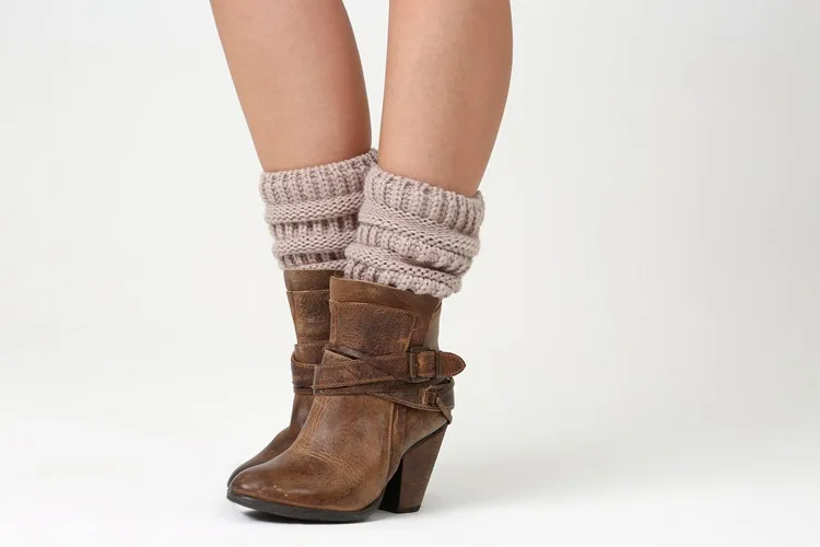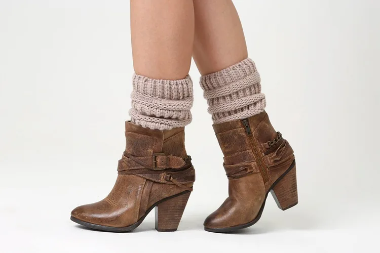 Женские шерстяные теплые сапоги, 1 пара, с манжетами на высоком каблуке, закрывают колени, Женские Вязаные Гетры, зимние ножные гетры