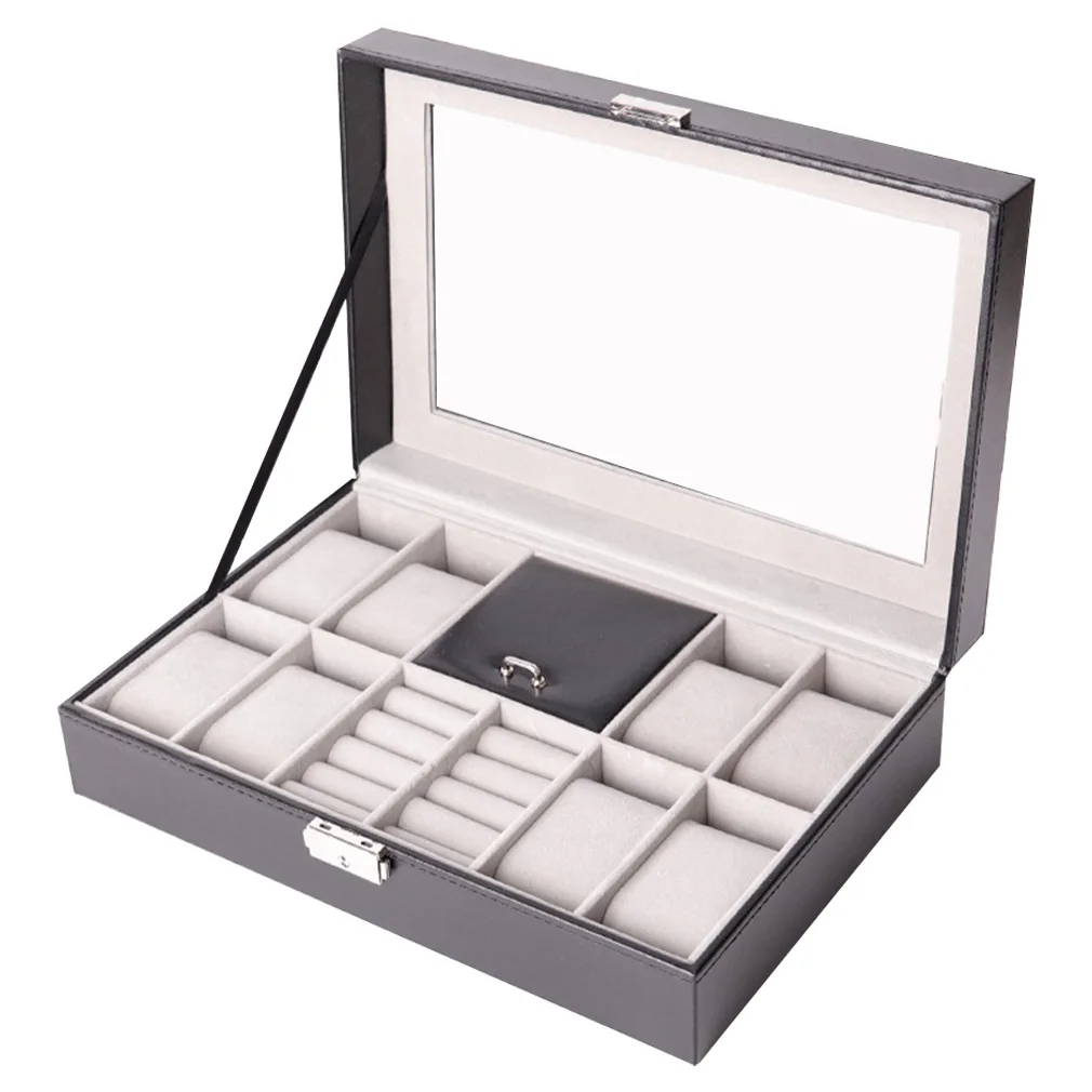 Коробка для часов с несколькими сетками, футляр для хранения часов из кожи и углеродного волокна, органайзер для очков, серег, колец, держатель для демонстрации ювелирных изделий