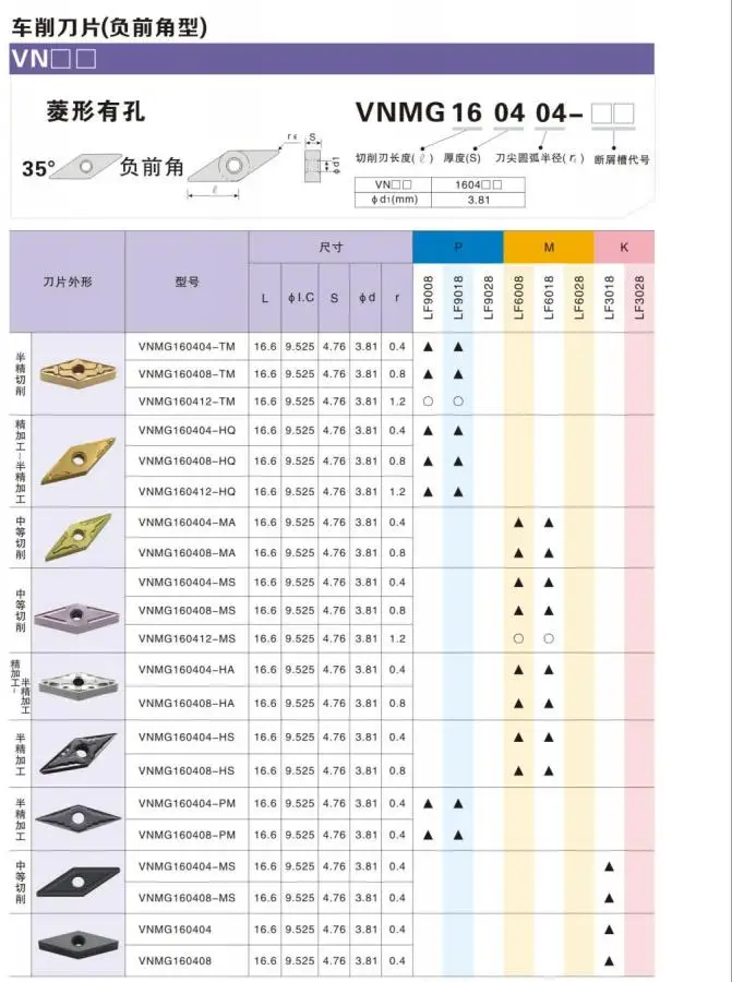 Номер моделиVNMG160404-HS LF6018 VNMG160408-HS LF6018 VNMG160412-HS LF6018